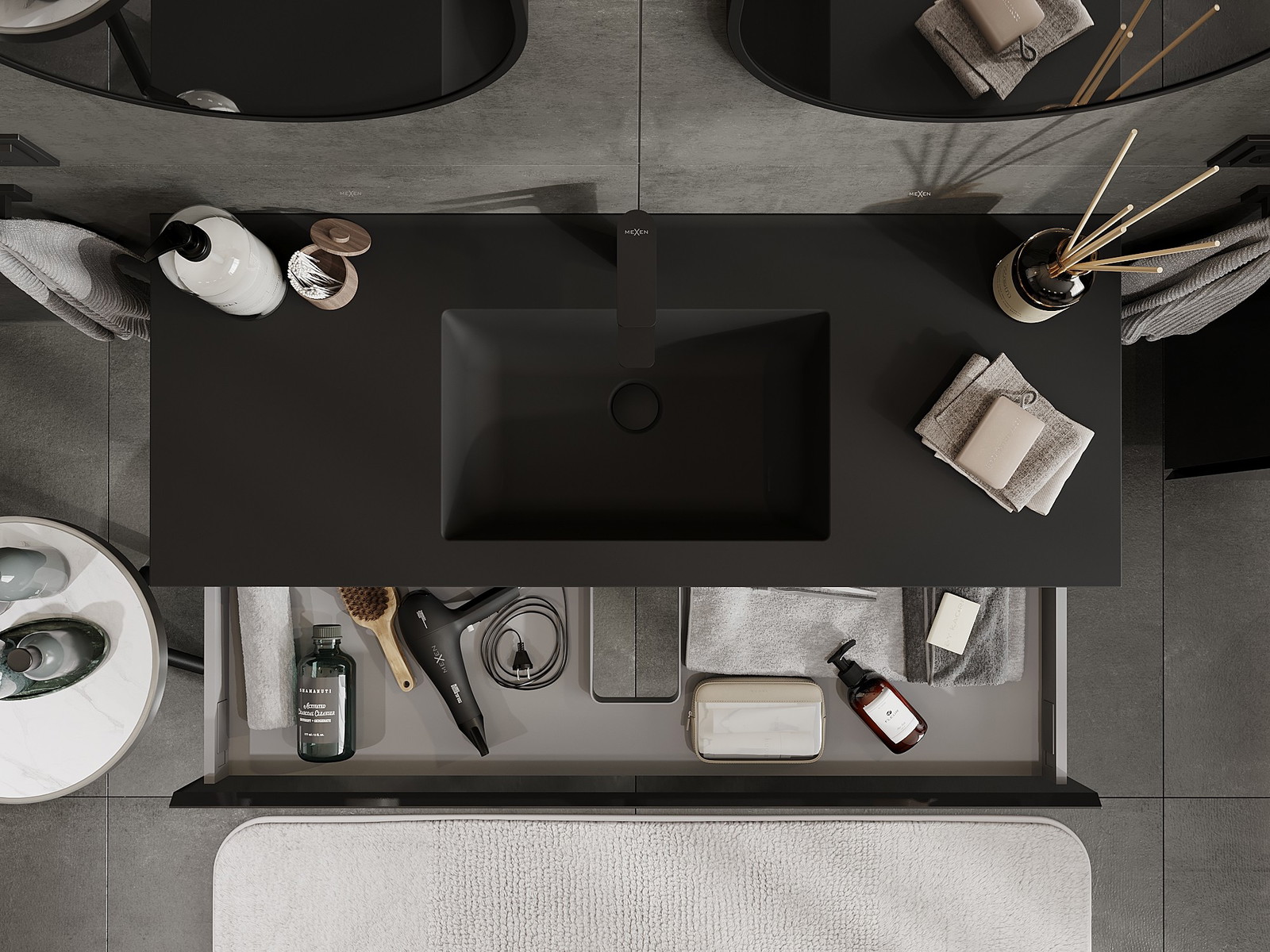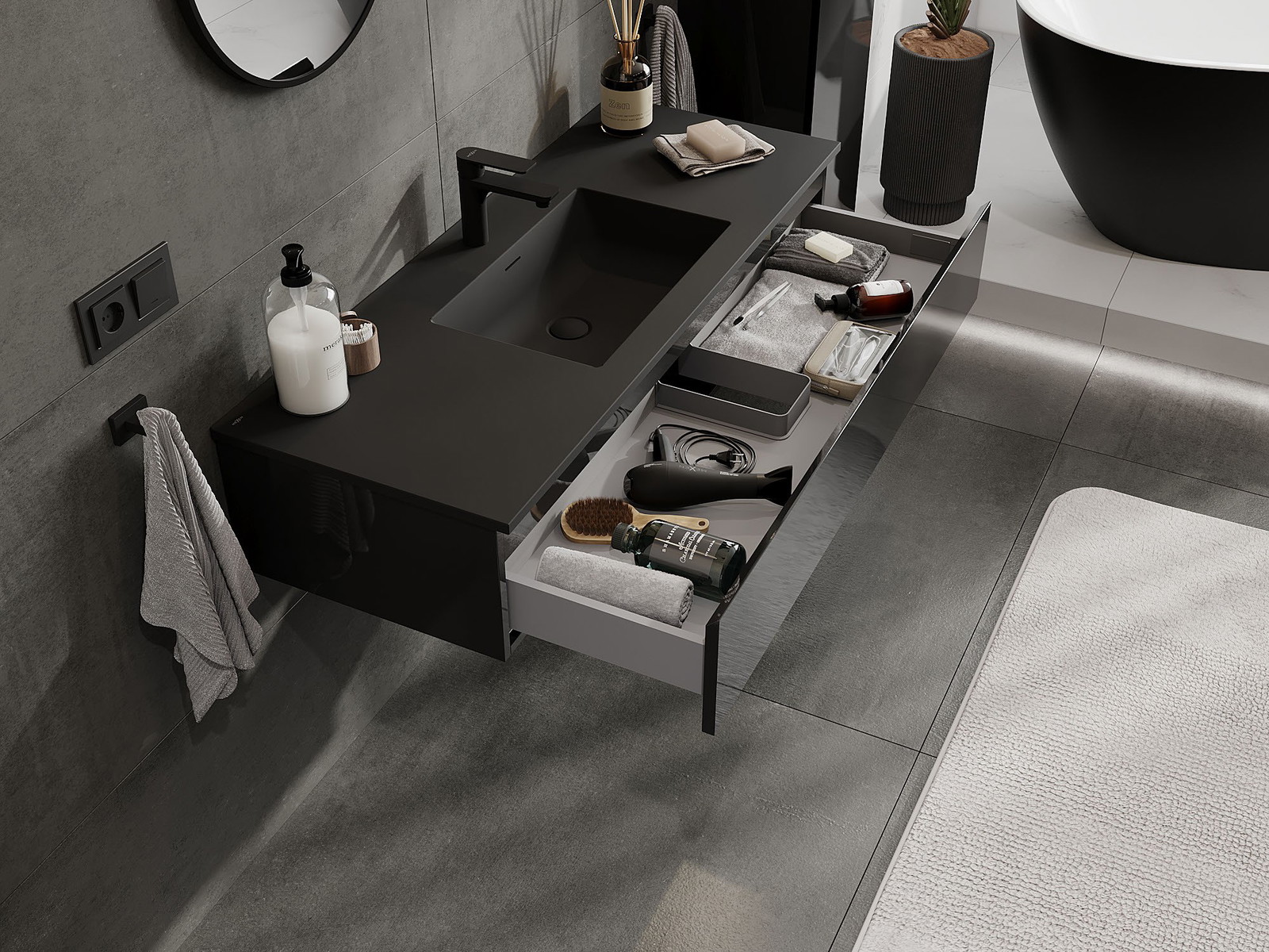 Our modular bathroom furniture can be combined in various colour configurations, allowing for complete personalisation. You can choose both the appearance and functions of individual elements, enabling you to adapt the furniture to your own stylistic and functional preferences.