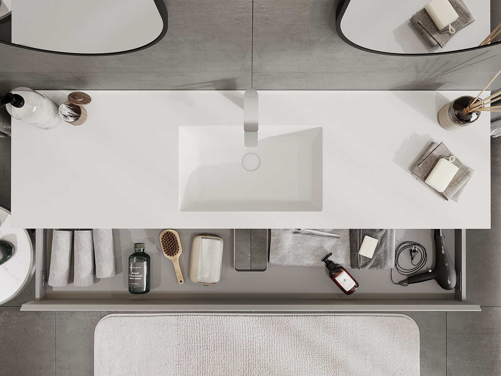 Our modular bathroom furniture can be combined in various colour configurations, allowing for complete personalisation. You can choose both the appearance and functions of individual elements, enabling you to adapt the furniture to your own stylistic and functional preferences.