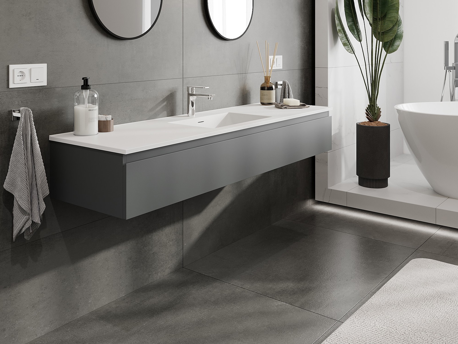 Our modular bathroom furniture can be combined in various colour configurations, allowing for complete personalisation. You can choose both the appearance and functions of individual elements, enabling you to adapt the furniture to your own stylistic and functional preferences.