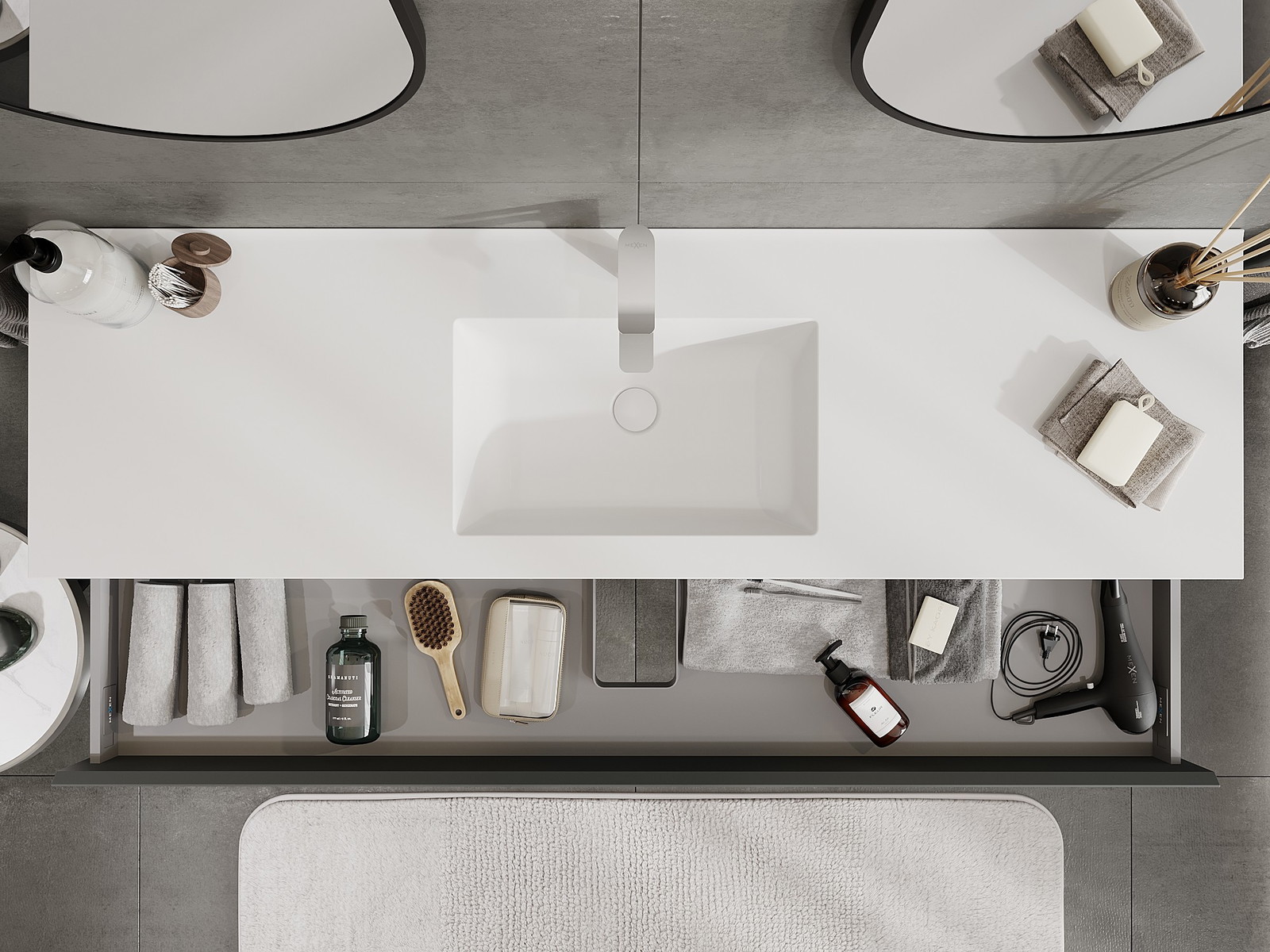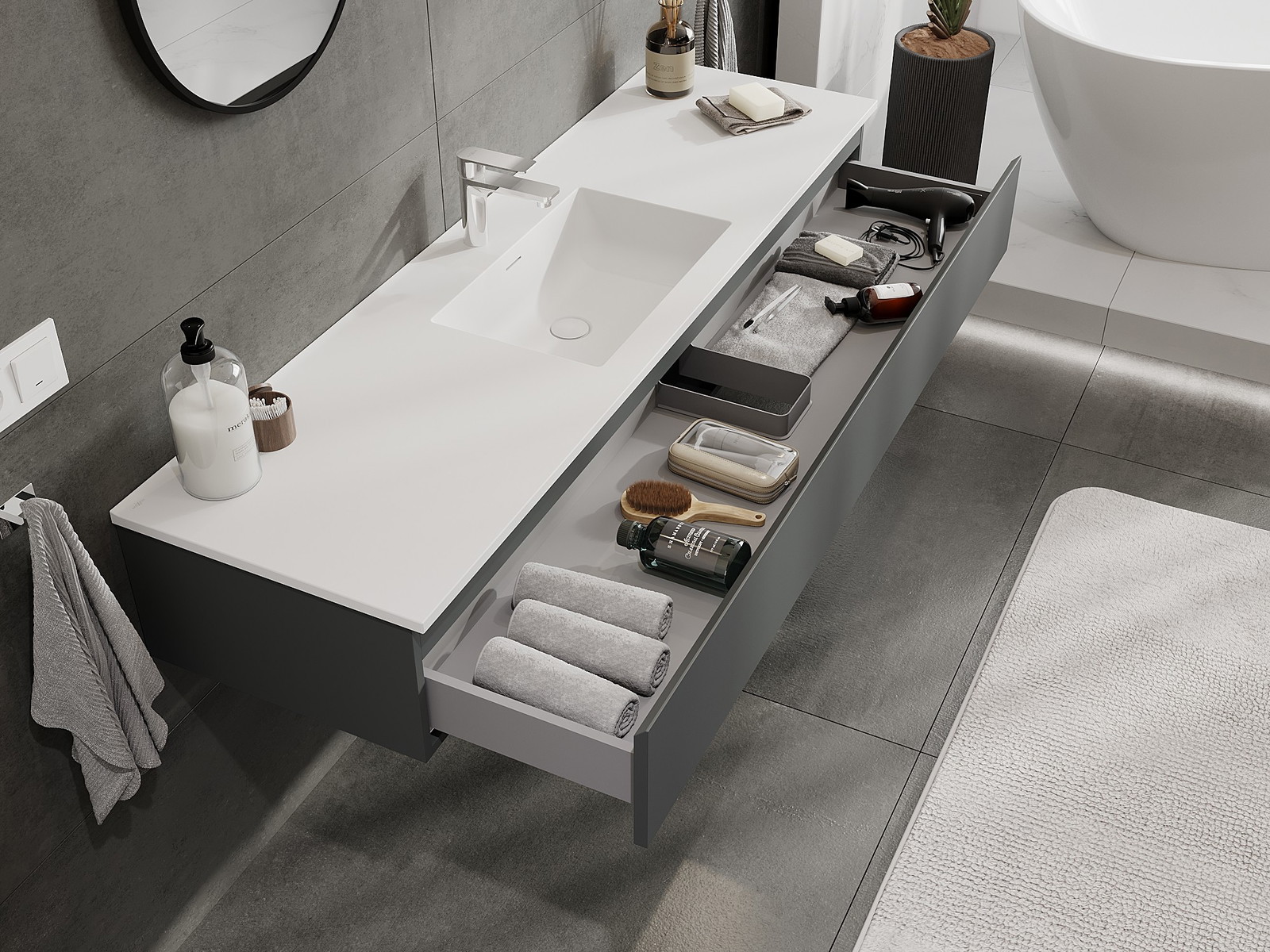 Mexen Orio bathroom cabinet 160 cm with Otis washbasin, 1 drawer, matt graphite/matt white - 91A10-16023-1-BF66-W18M01