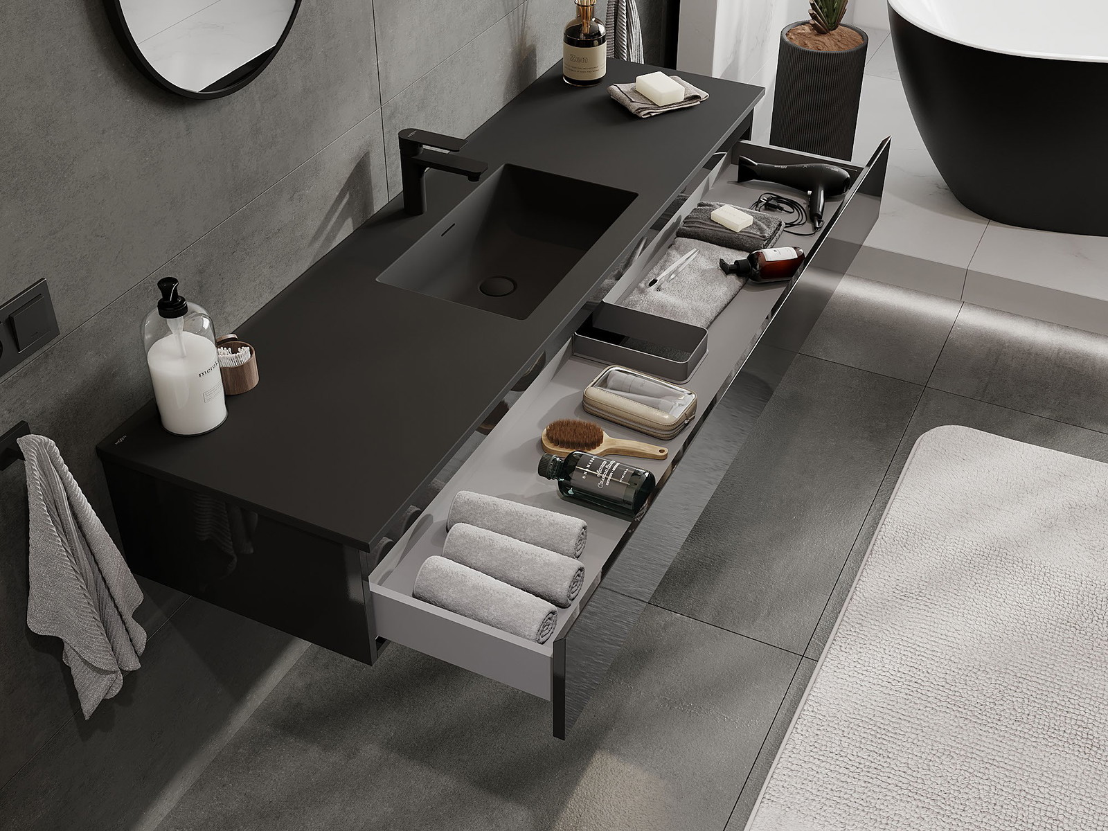 Mexen Orio bathroom cabinet 160 cm with Otis sink, 1 drawer, black gloss/black matte - 91A10-16023-1-BF70-W18M71