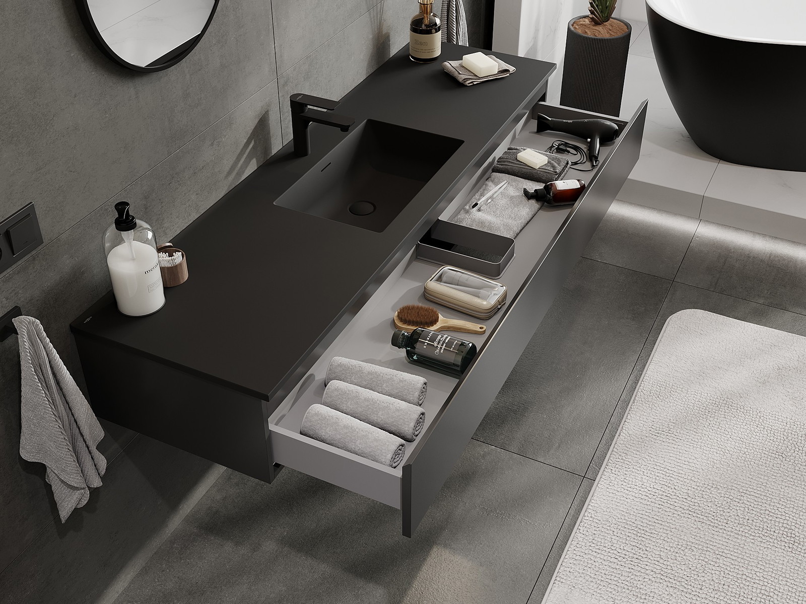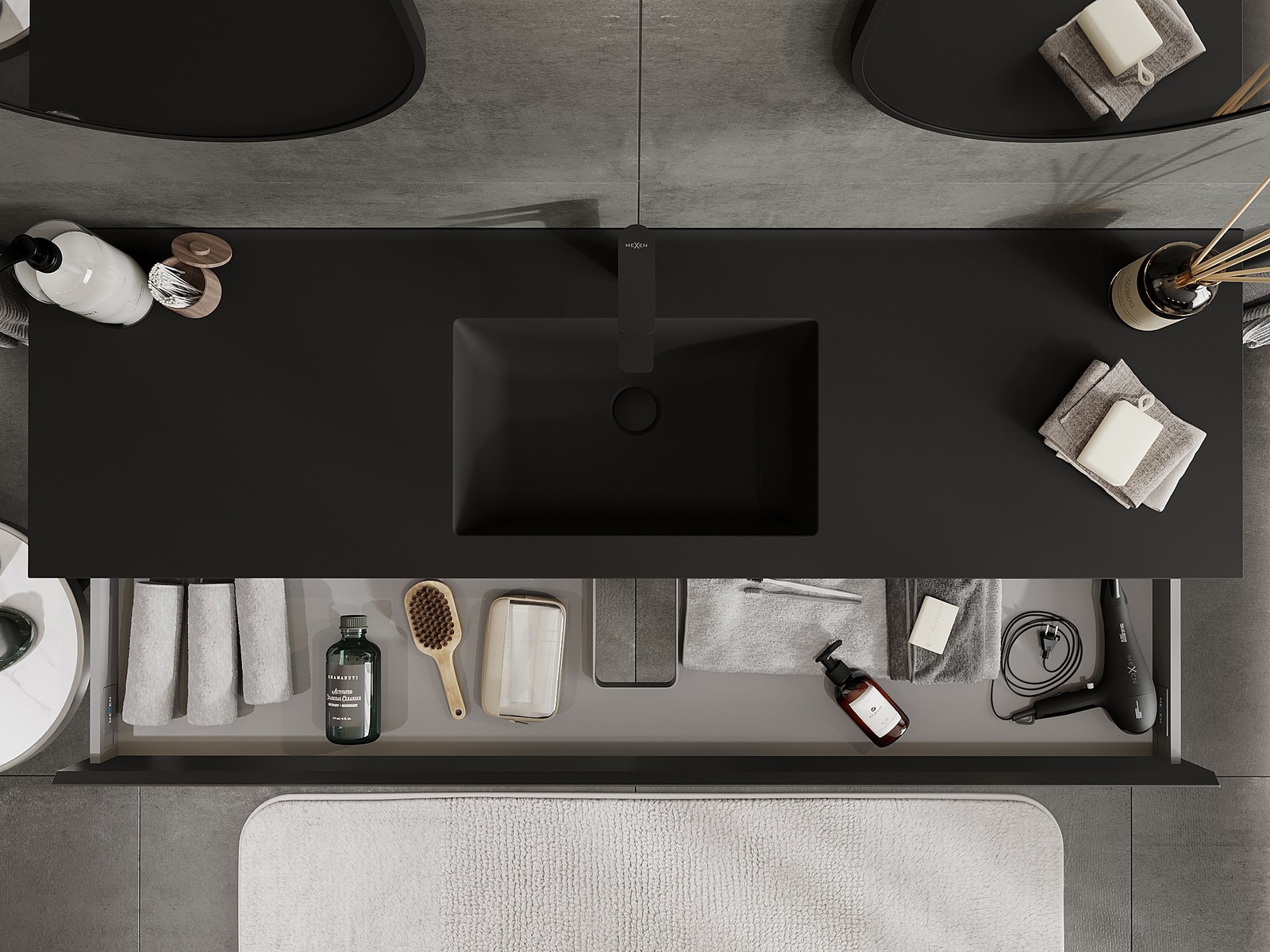 Mexen Orio bathroom cabinet 160 cm with Otis sink, 1 drawer, black matte - 91A10-16023-1-BF71-W18M71