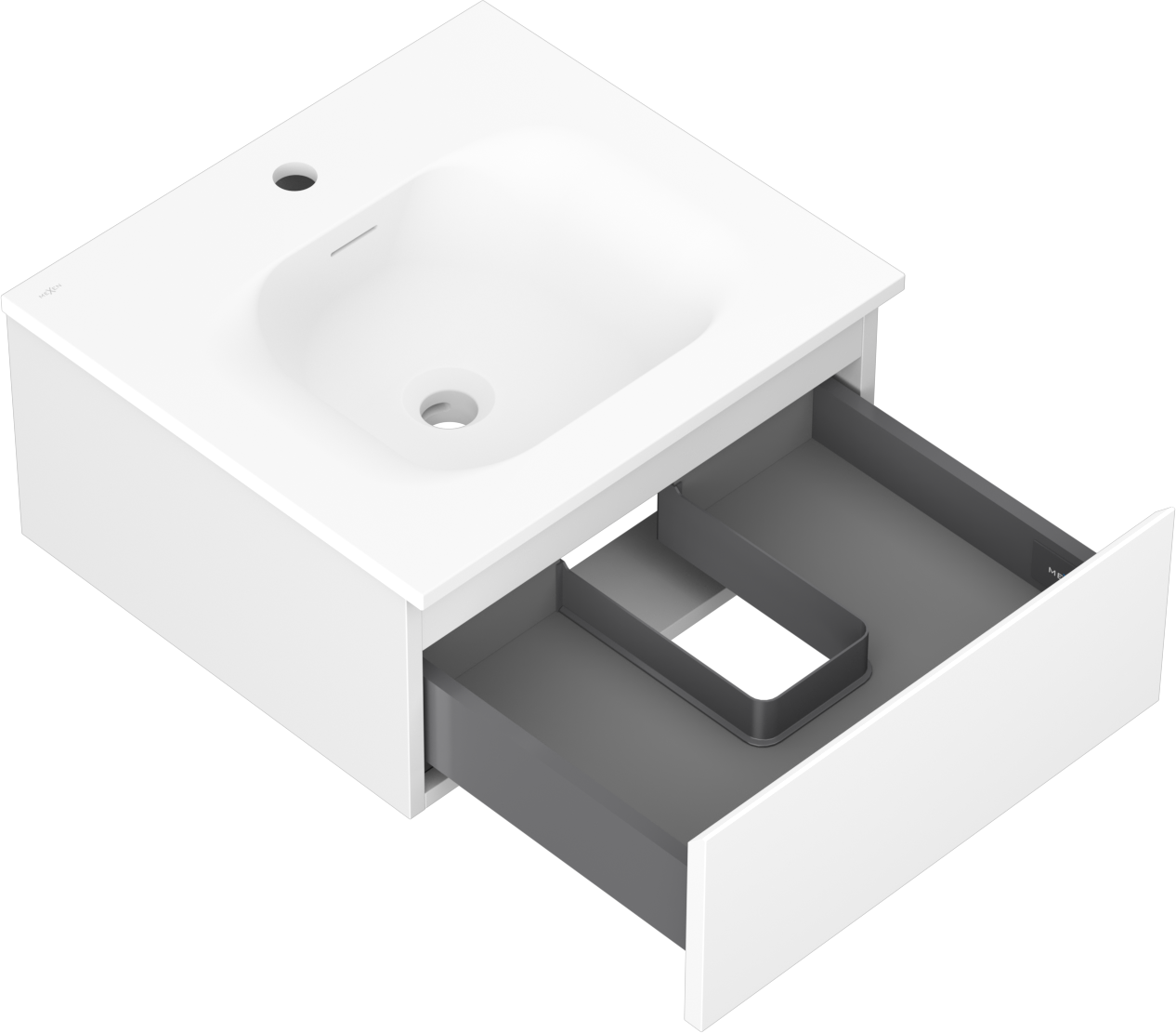 The cutout in the drawer is designed in such a way as to accommodate the siphon, which is essential in sink installations. This allows the furniture to be fully functional without having to give up drawer space for the installation.