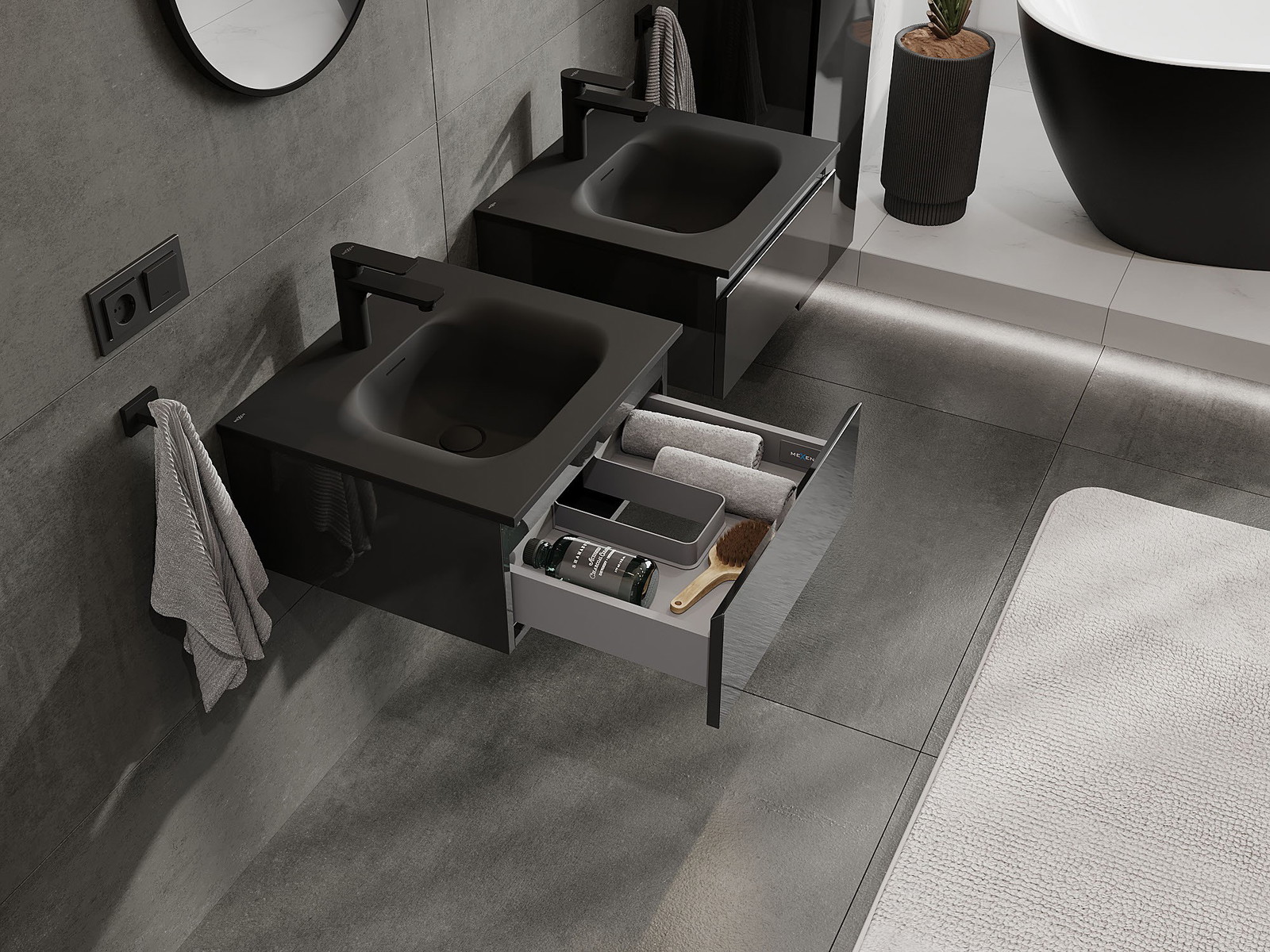 Mexen Orio 50 cm Bathroom Cabinet with Vela Sink, 1 Drawer, Black Gloss/Black Matte - 91A10-05023-1-BF70-W23M71