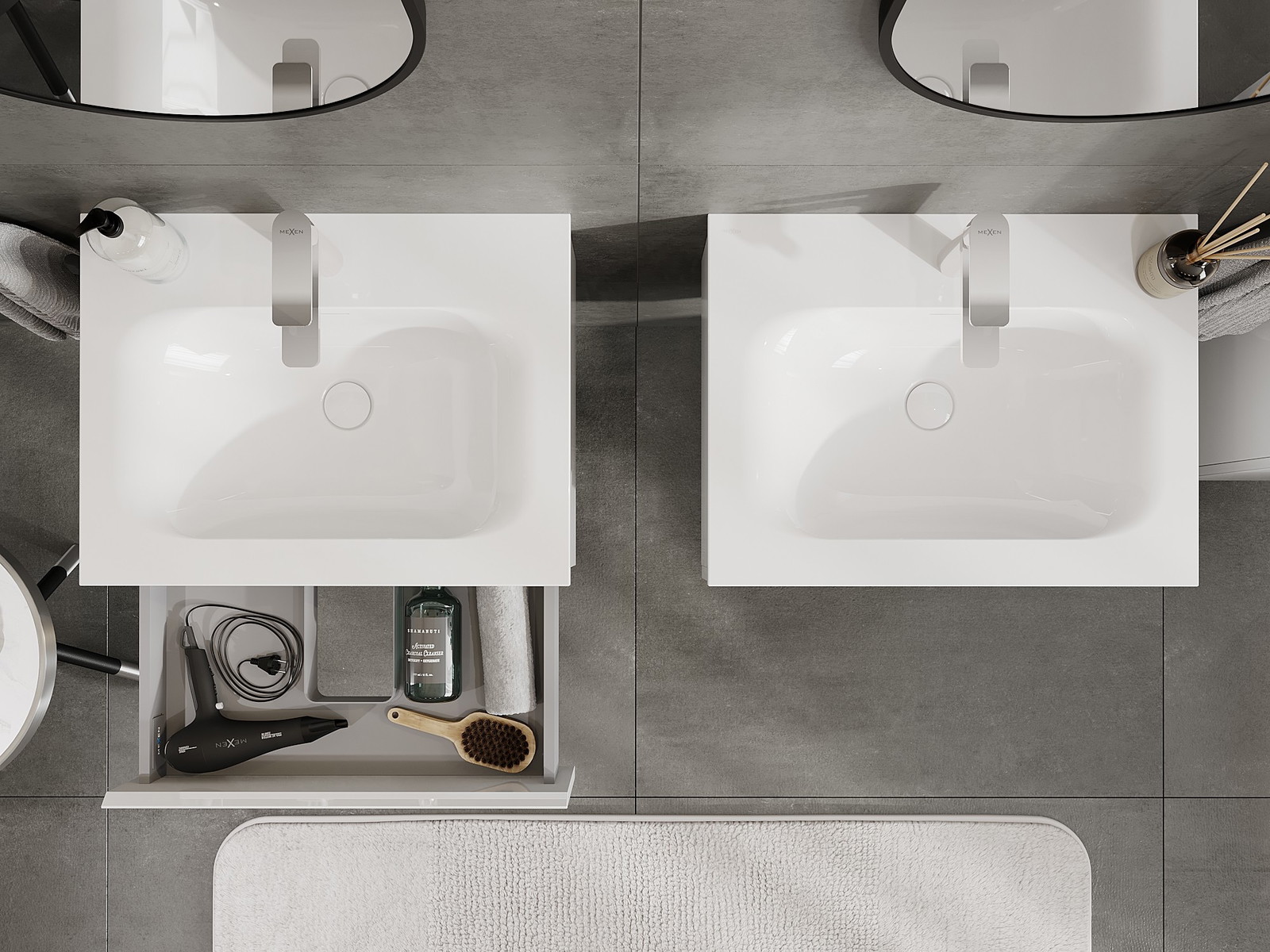 The cabinet carcass is delivered fully assembled, which means maximum convenience and time savings. You don't have to spend hours assembling the furniture – just install it in your chosen spot in the bathroom. This is an ideal solution for those who appreciate quick assembly and immediate results.