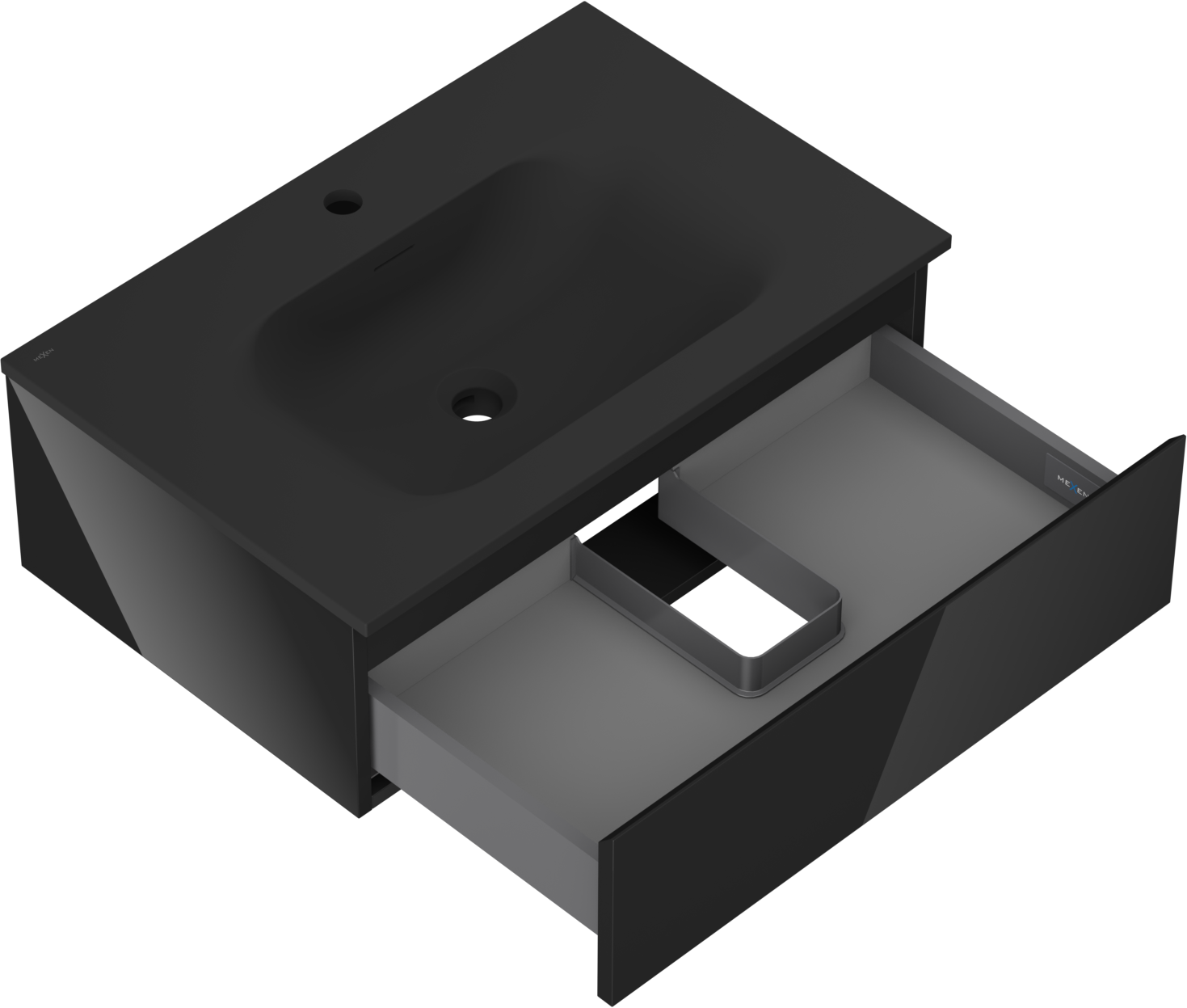 Mexen Orio bathroom cabinet 70 cm with Vela washbasin, 1 drawer, black gloss/black matte - 91A10-07023-1-BF70-W23M71
