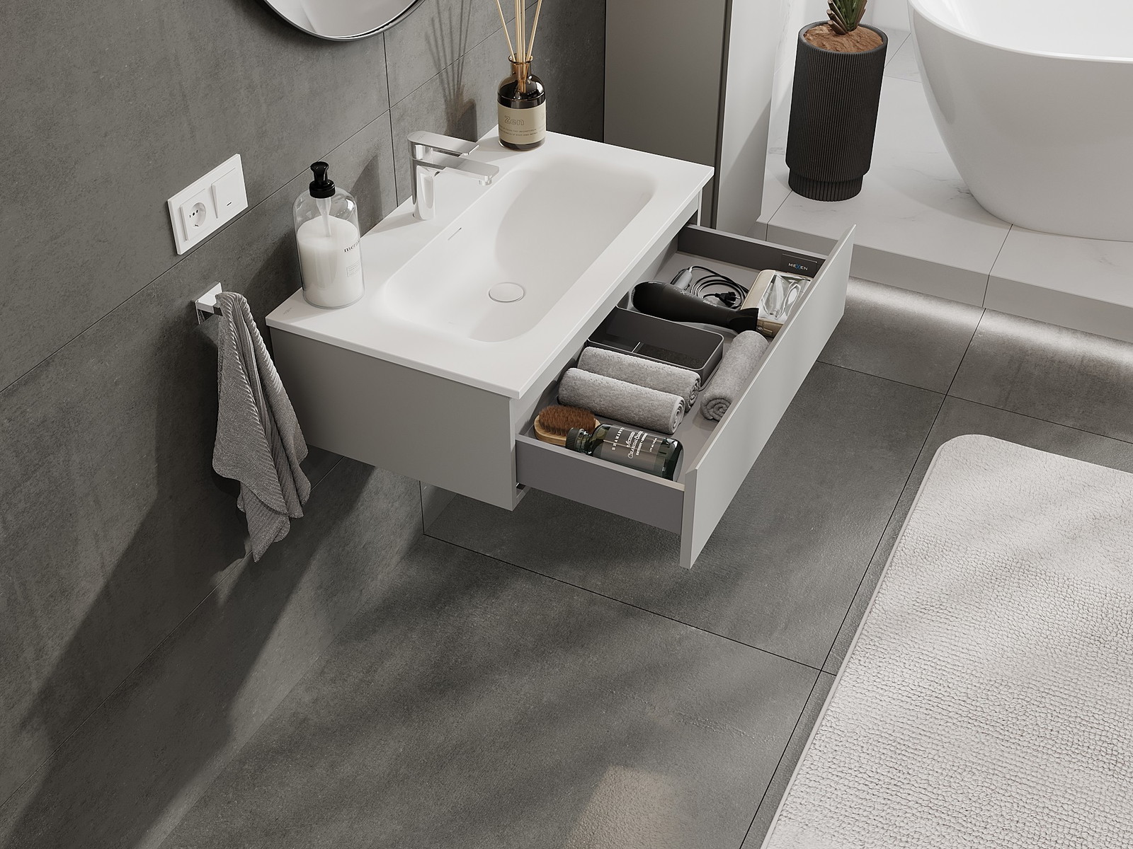Our modular bathroom furniture can be combined in various colour configurations, allowing for complete personalisation. You can choose both the appearance and functions of individual elements, enabling you to adapt the furniture to your own stylistic and functional preferences.