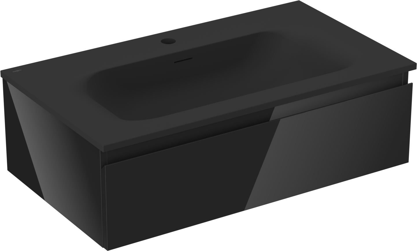 Mexen Orio bathroom cabinet 80 cm with Vela washbasin, 1 drawer, black gloss/black matt - 91A10-08023-1-BF70-W23M71