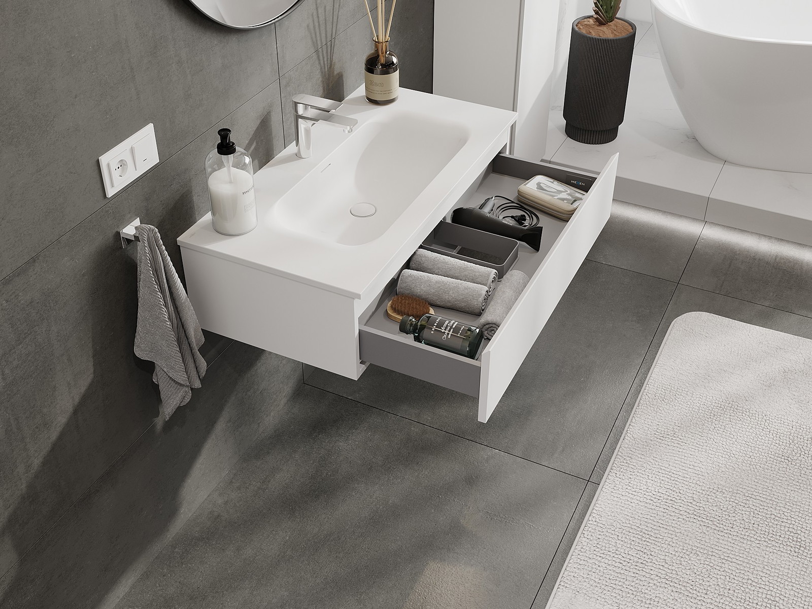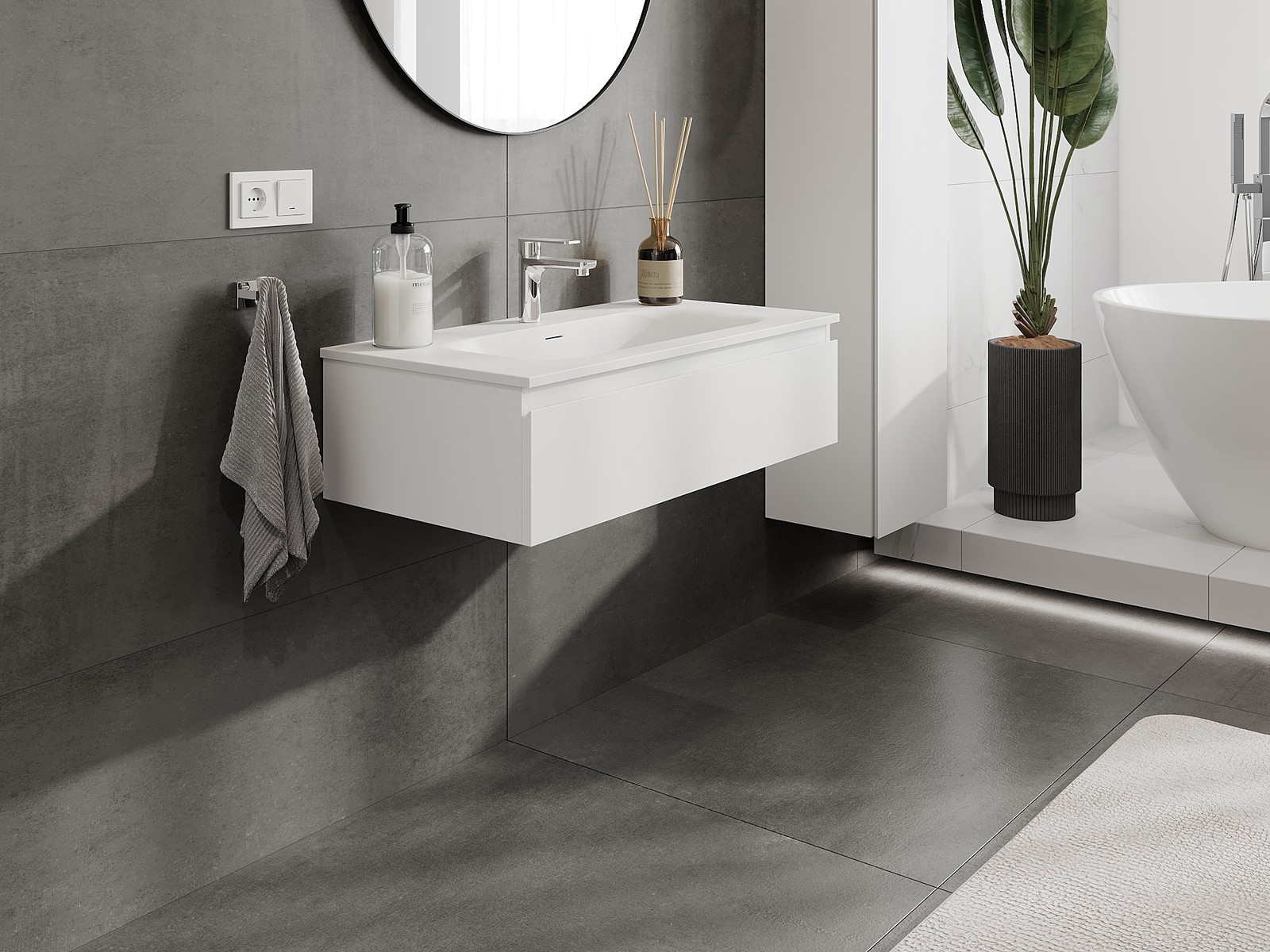 Our modular bathroom furniture can be combined in various colour configurations, allowing for complete personalisation. You can choose both the appearance and functions of individual elements, enabling you to adapt the furniture to your own stylistic and functional preferences.