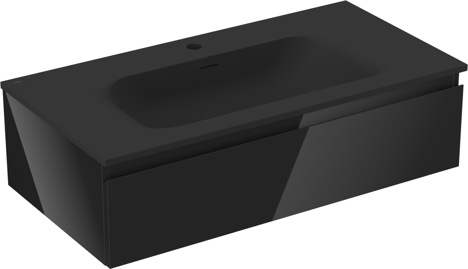 Mexen Orio bathroom cabinet 90 cm with Vela basin, 1 drawer, black gloss/black matt - 91A10-09023-1-BF70-W23M71