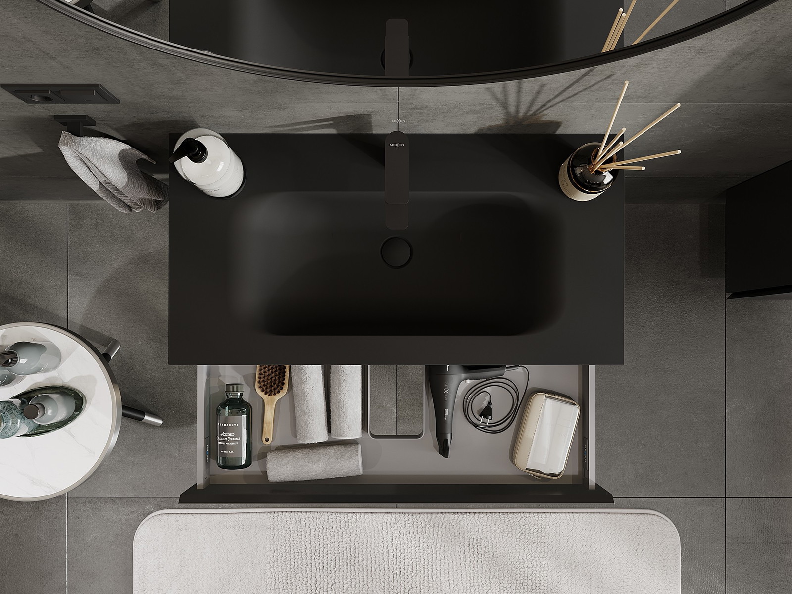 Mexen Orio bathroom cabinet 90 cm with Vela washbasin, 1 drawer, black matte - 91A10-09023-1-BF71-W23M71