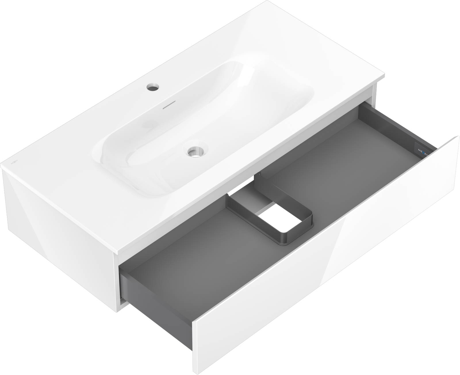 Mexen Orio bathroom cabinet 100 cm with Vela washbasin, 1 drawer, white gloss - 91A10-10023-1-BF00-W23M00