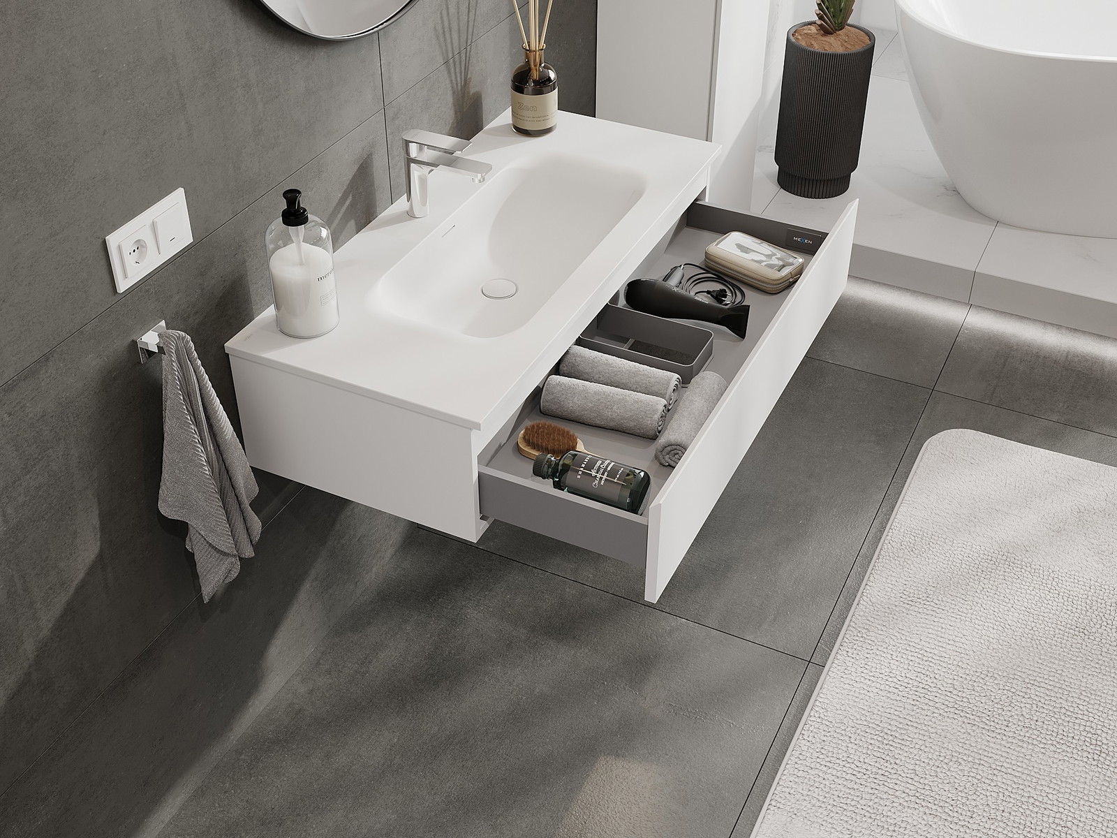 Mexen Orio bathroom cabinet 100 cm with Vela sink, 1 drawer, white matte - 91A10-10023-1-BF01-W23M01