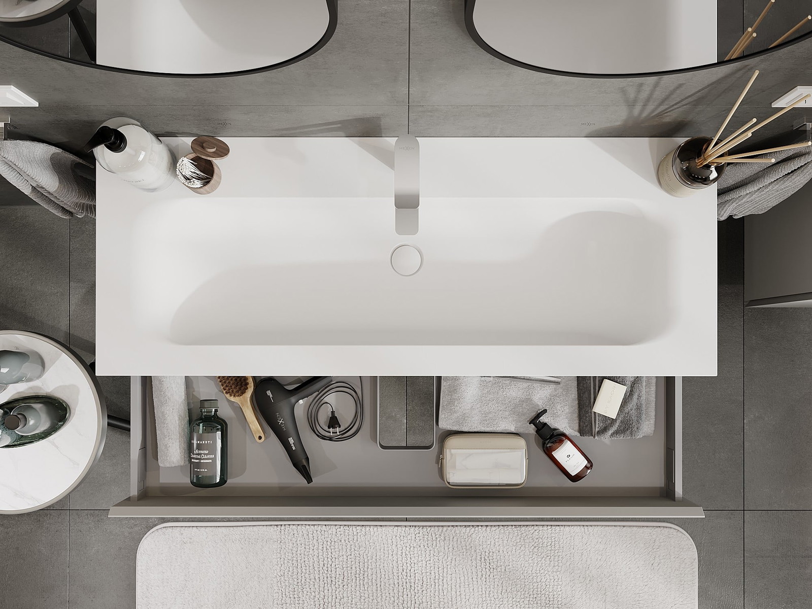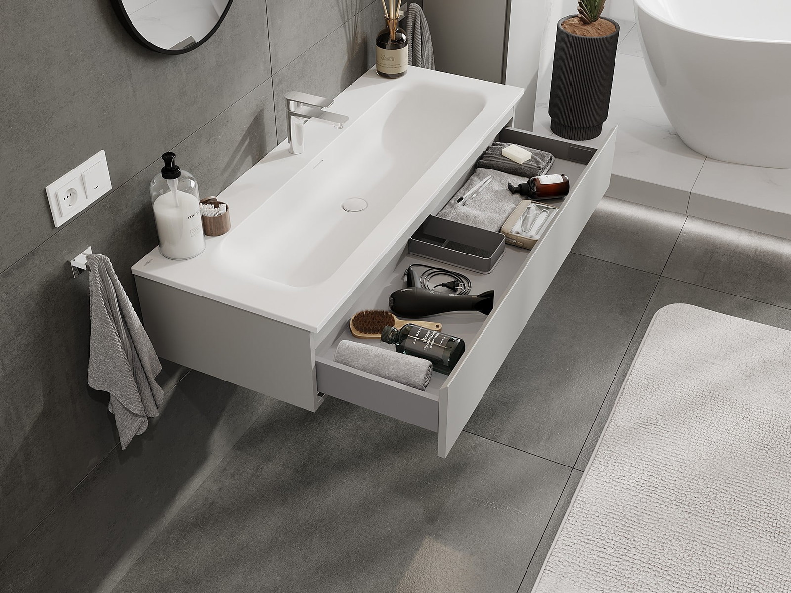 Our modular bathroom furniture can be combined in various colour configurations, allowing for complete personalisation. You can choose both the appearance and functions of individual elements, enabling you to adapt the furniture to your own stylistic and functional preferences.
