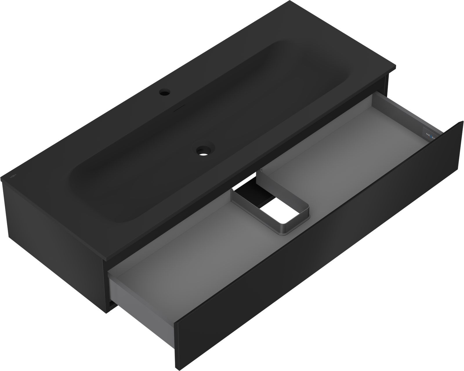 The cutout in the drawer is designed in such a way as to accommodate the siphon, which is essential in sink installations. This allows the furniture to be fully functional without having to give up drawer space for the installation.