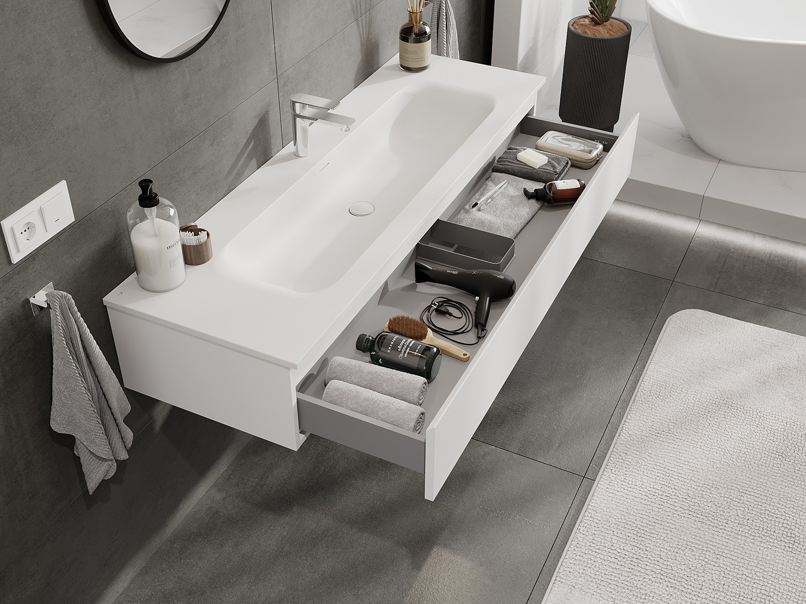 Our modular bathroom furniture can be combined in various colour configurations, allowing for complete personalisation. You can choose both the appearance and functions of individual elements, enabling you to adapt the furniture to your own stylistic and functional preferences.