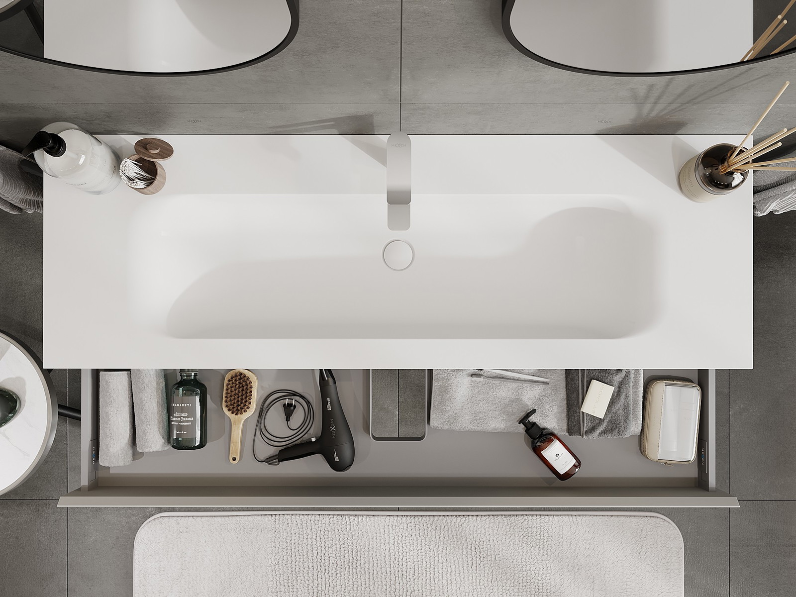 Mexen Orio bathroom cabinet 140 cm with Vela washbasin, 1 drawer, grey matte/white matte - 91A10-14023-1-BF62-W23M01