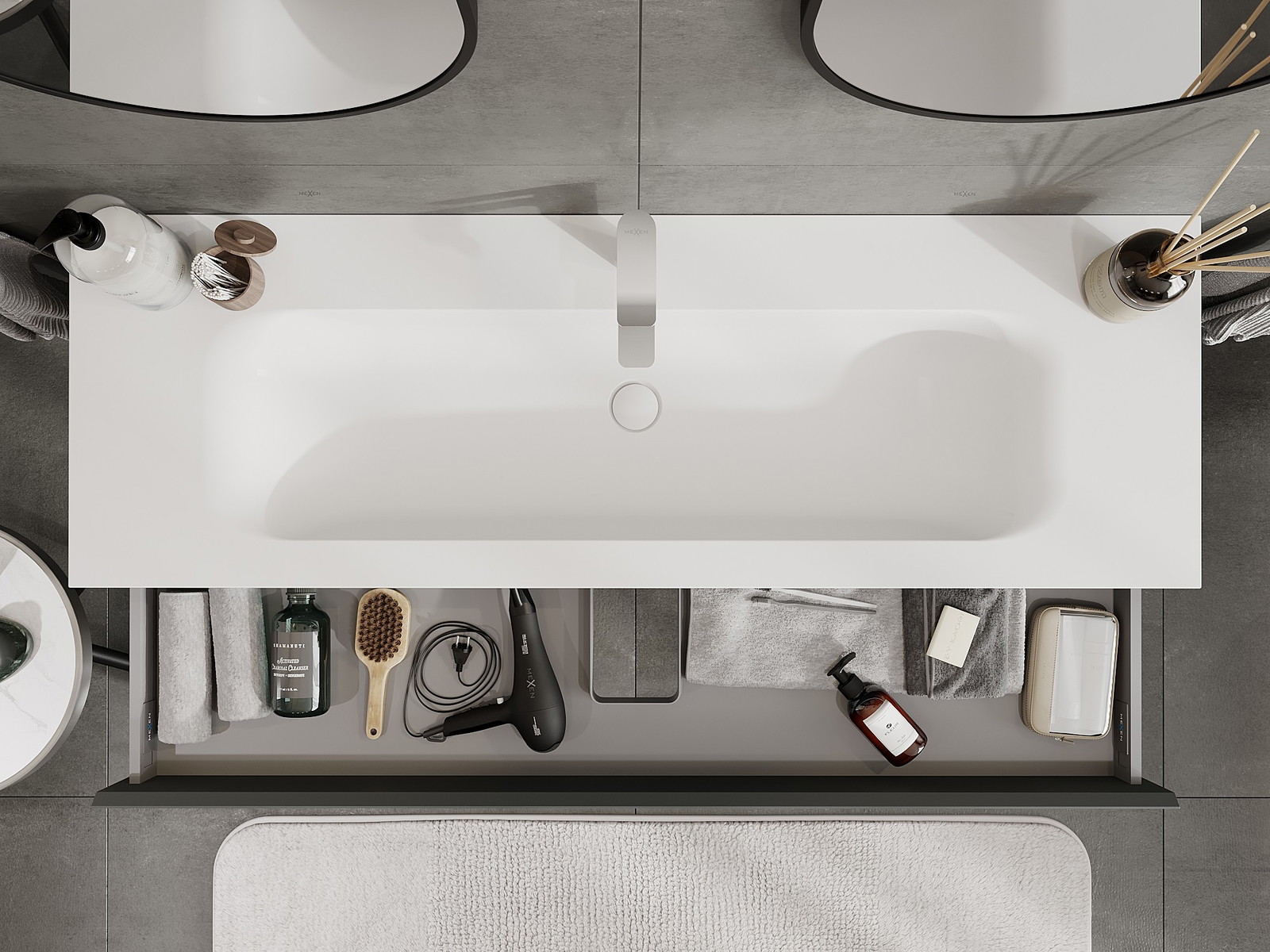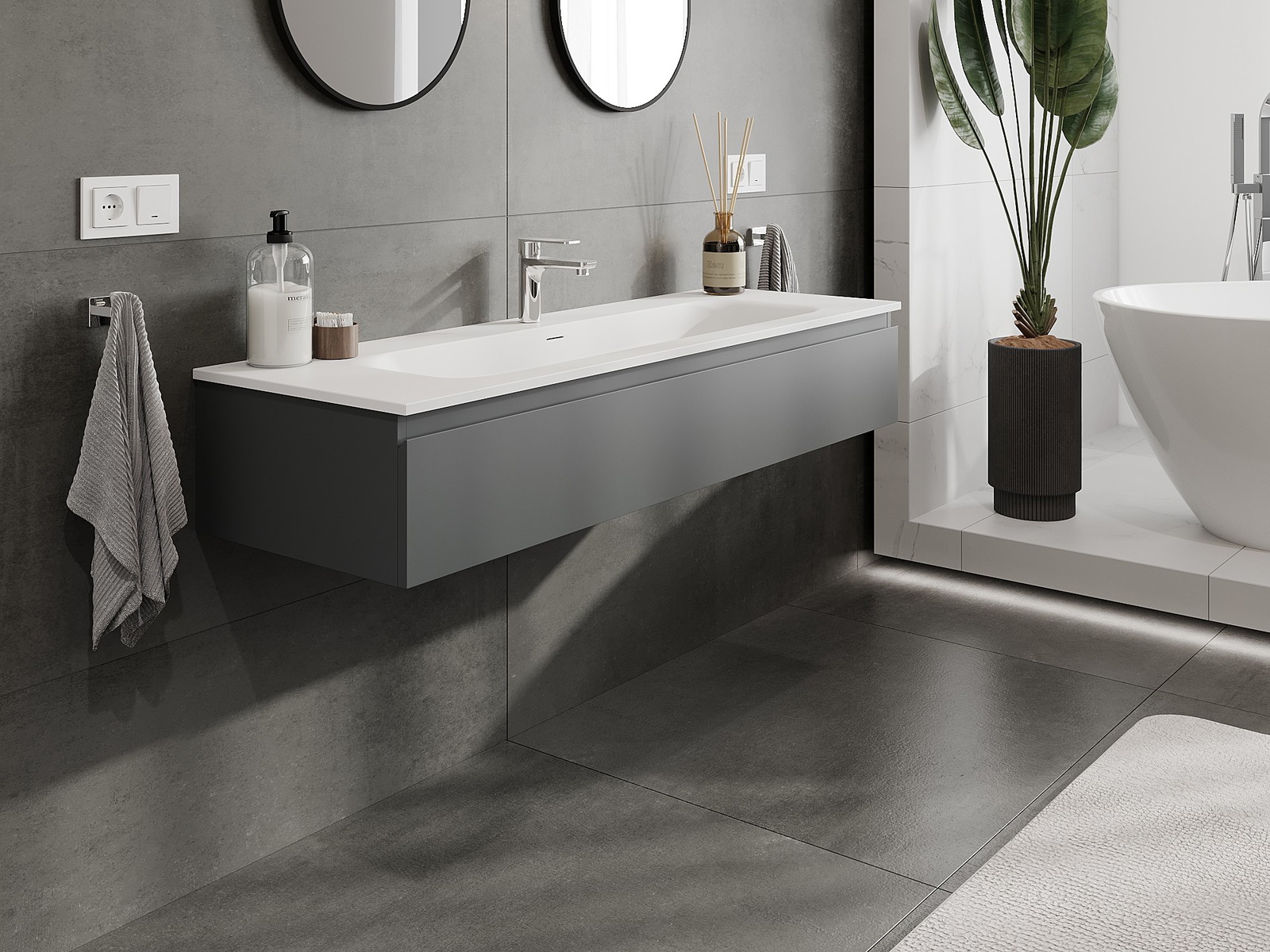 Our modular bathroom furniture can be combined in various colour configurations, allowing for complete personalisation. You can choose both the appearance and functions of individual elements, enabling you to adapt the furniture to your own stylistic and functional preferences.