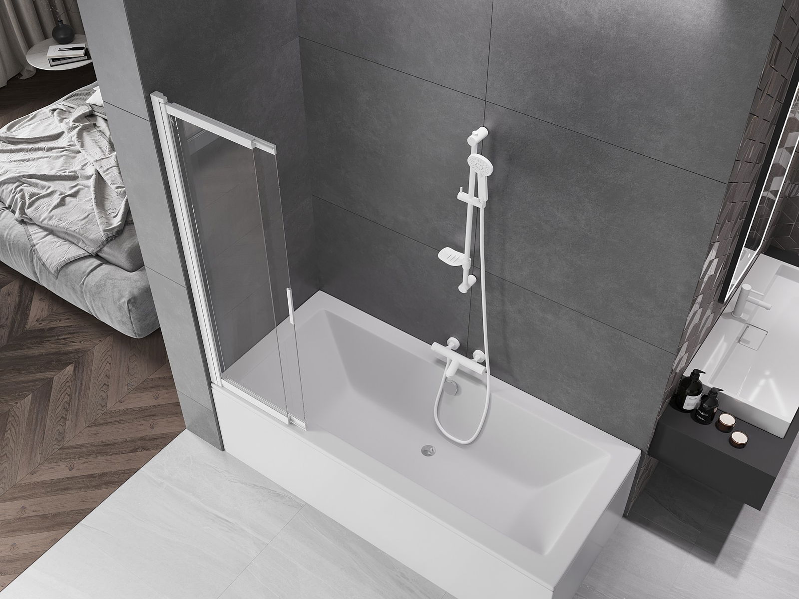 Effective protection against water spilling during bathing. The screen has seals that perfectly fit the glass surface and the edge of the bathtub. A functional solution ensuring safety and easy maintenance of cleanliness.