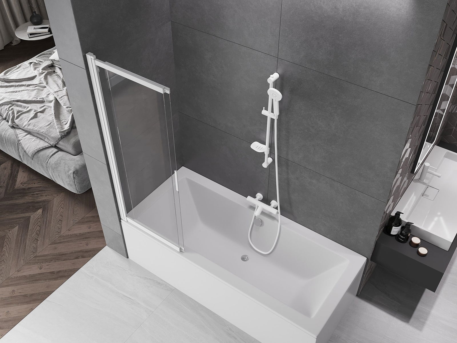 Effective protection against water spilling during bathing. The screen has seals that perfectly fit the glass surface and the edge of the bathtub. A functional solution ensuring safety and easy maintenance of cleanliness.