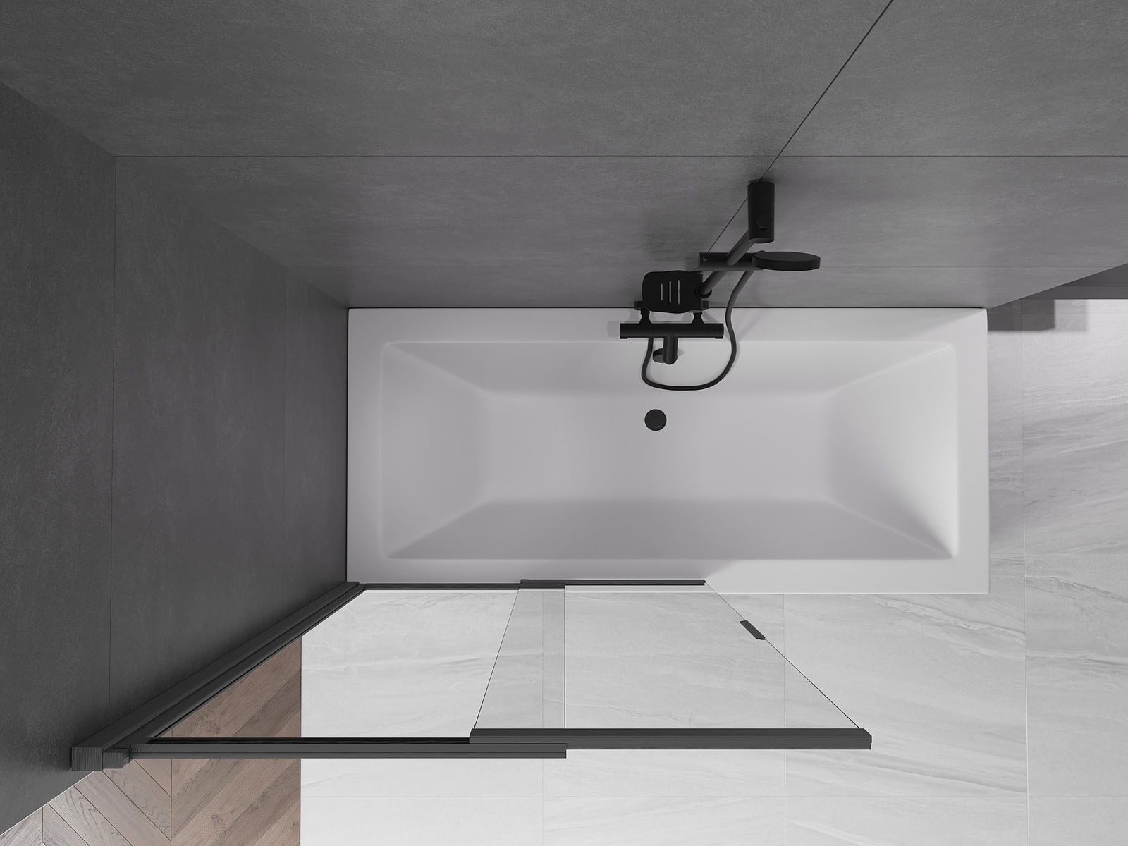 Effective protection against water spilling during bathing. The screen has seals that perfectly fit the glass surface and the edge of the bathtub. A functional solution ensuring safety and easy maintenance of cleanliness.