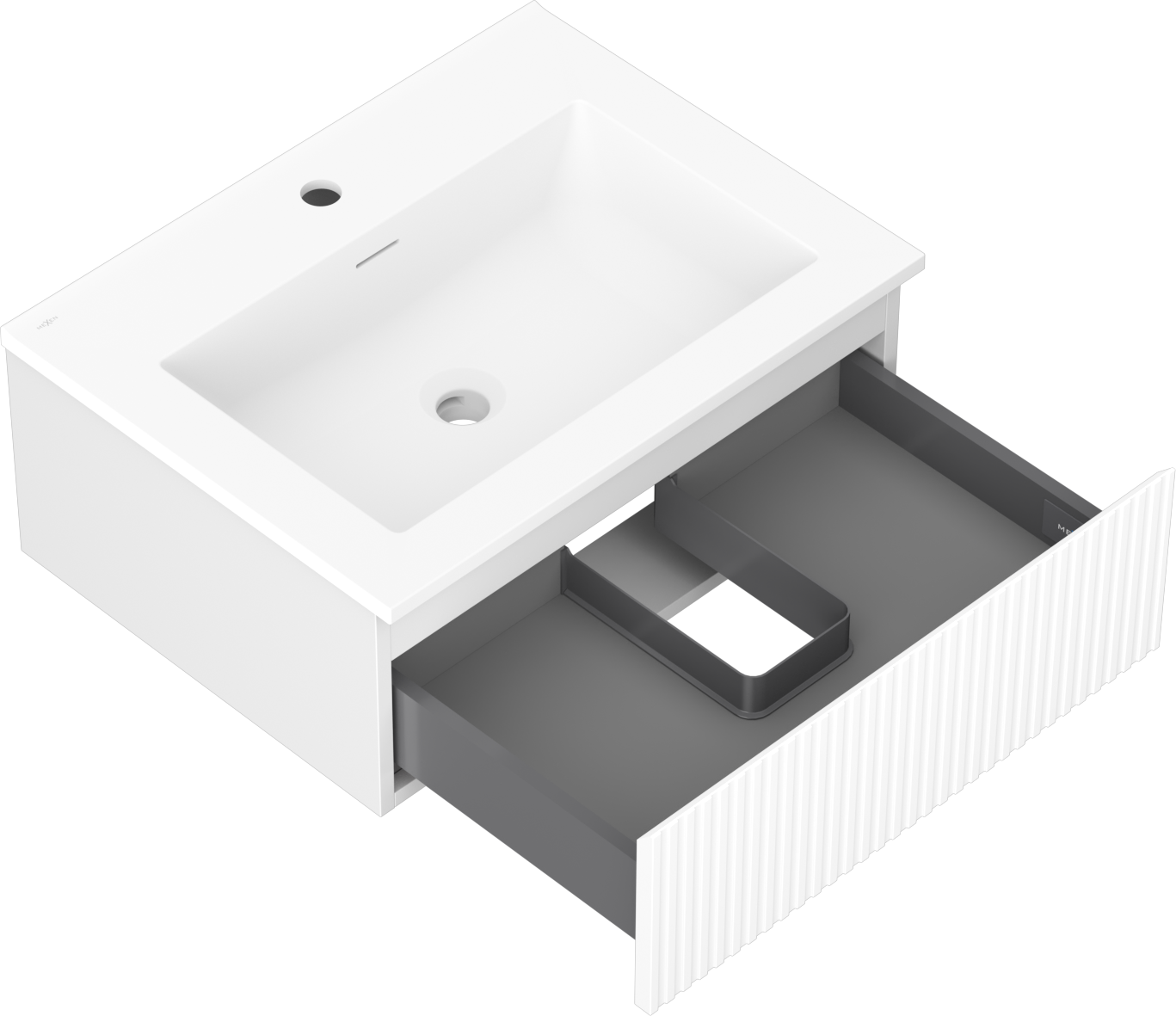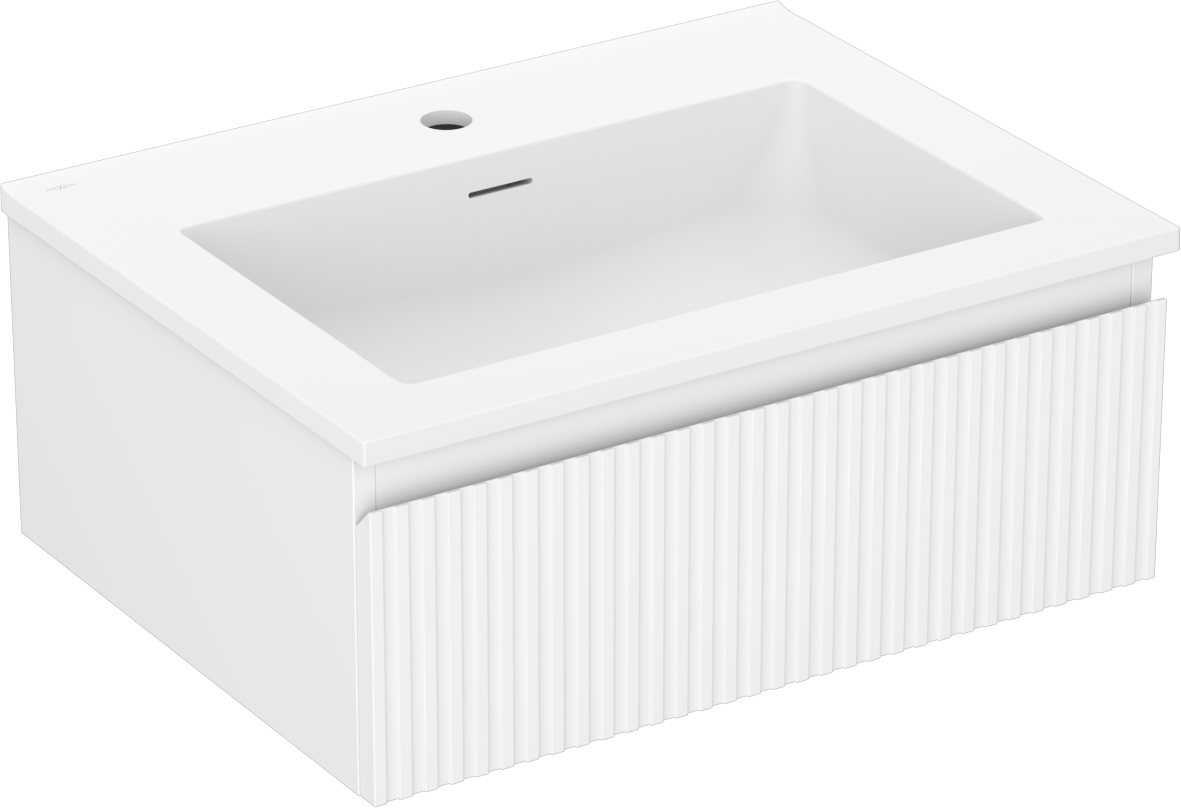Mexen Rivel bathroom cabinet 60 cm with Otis sink, 1 drawer, grooved, white mat - 91A20-06023-1-BF01-W18M01