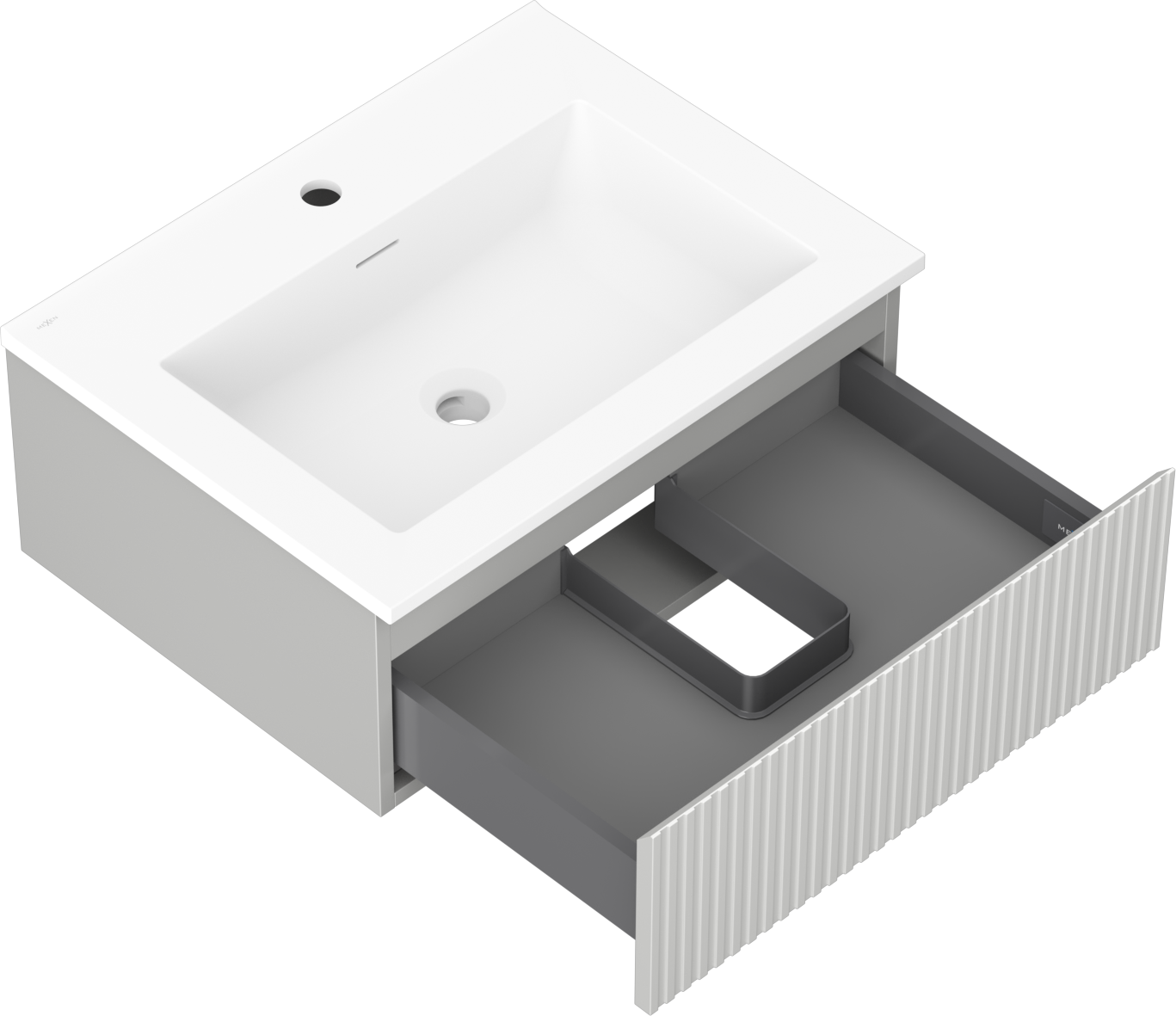 Mexen Rivel bathroom cabinet 60 cm with Otis sink, 1 drawer, grooved, grey matte/white matte - 91A20-06023-1-BF62-W18M01