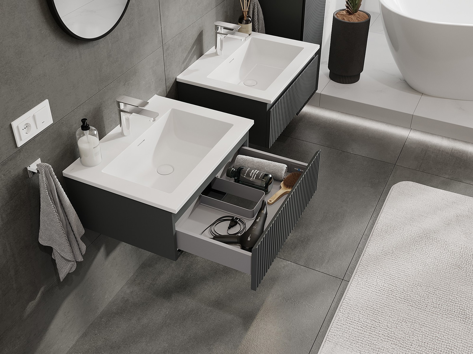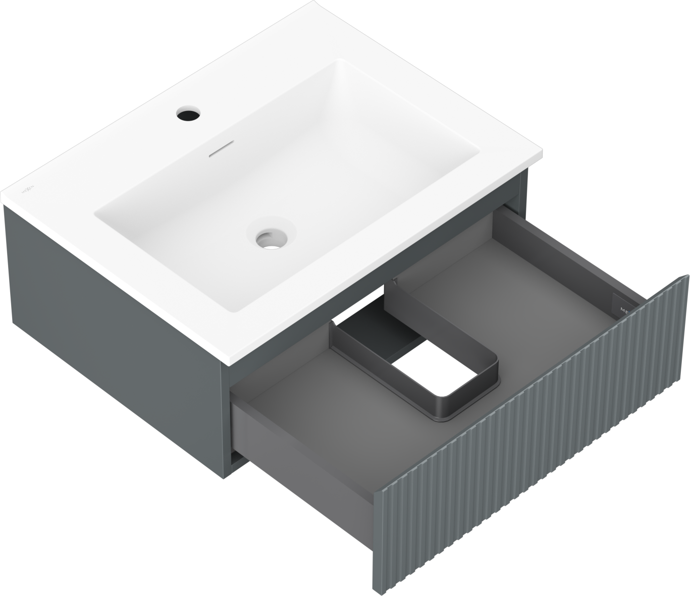 Mexen Rivel bathroom cabinet 60 cm with Otis washbasin, 1 drawer, fluted, graphite matt/white matt - 91A20-06023-1-BF66-W18M01