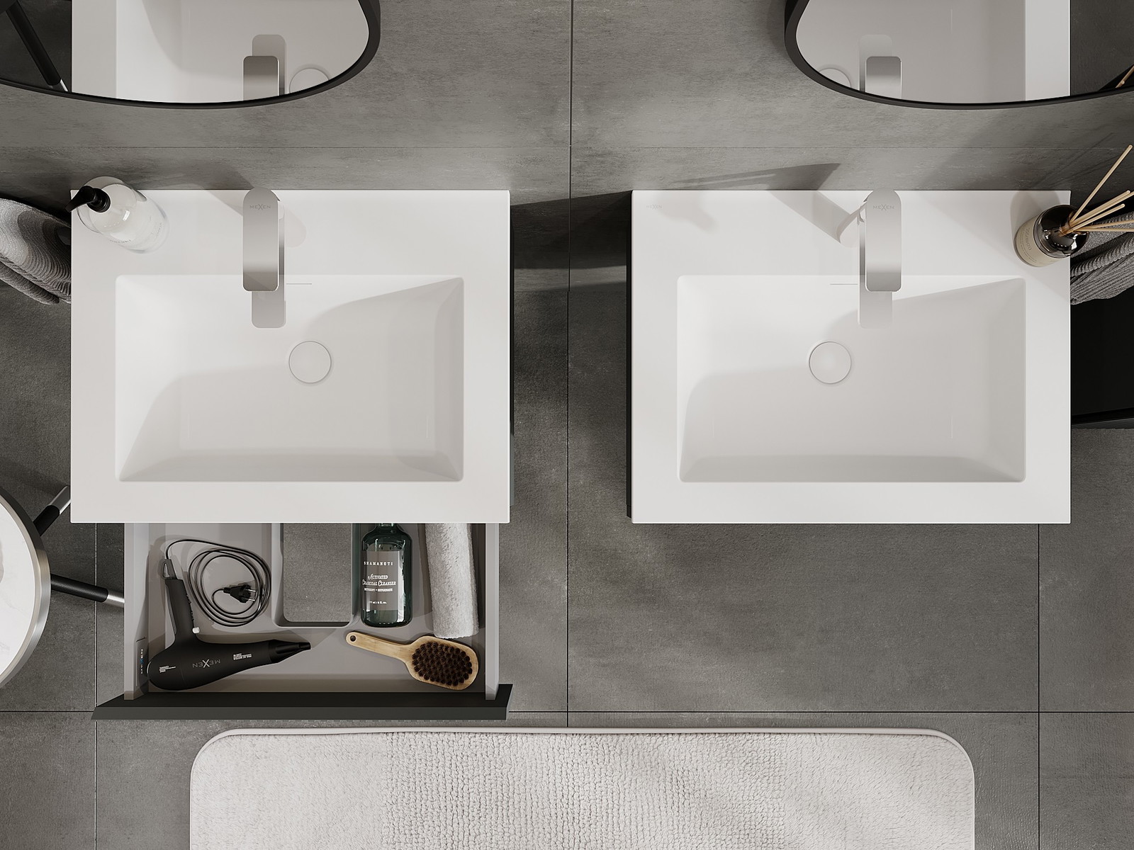Our modular bathroom furniture can be combined in various colour configurations, allowing for complete personalisation. You can choose both the appearance and functions of individual elements, enabling you to adapt the furniture to your own stylistic and functional preferences.