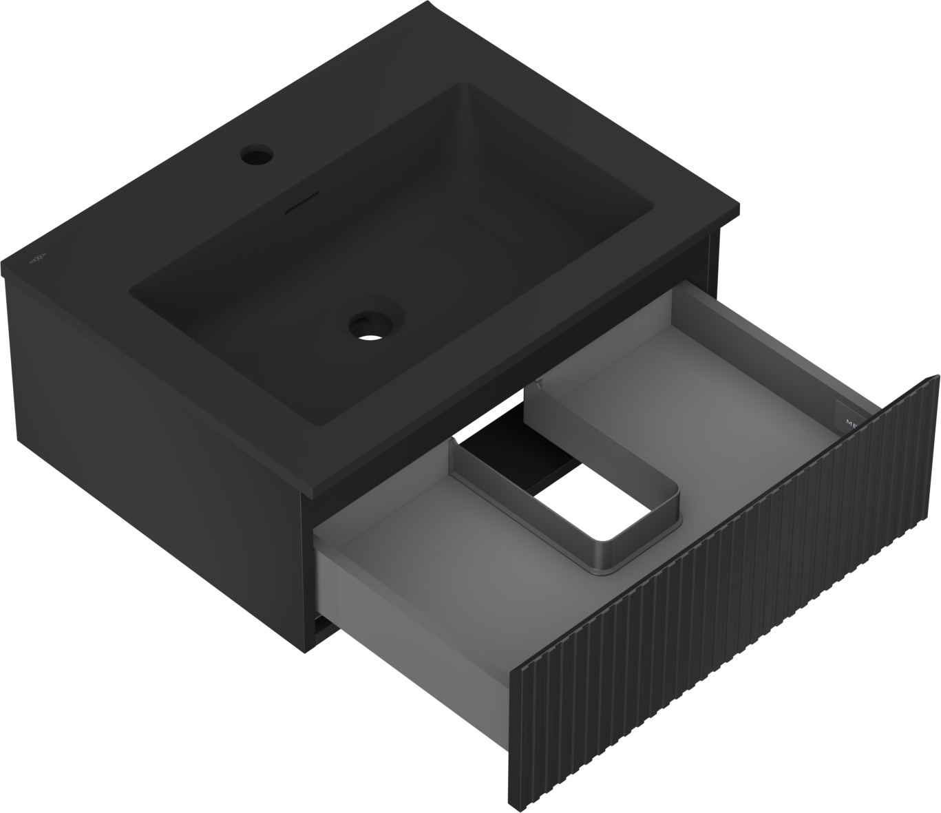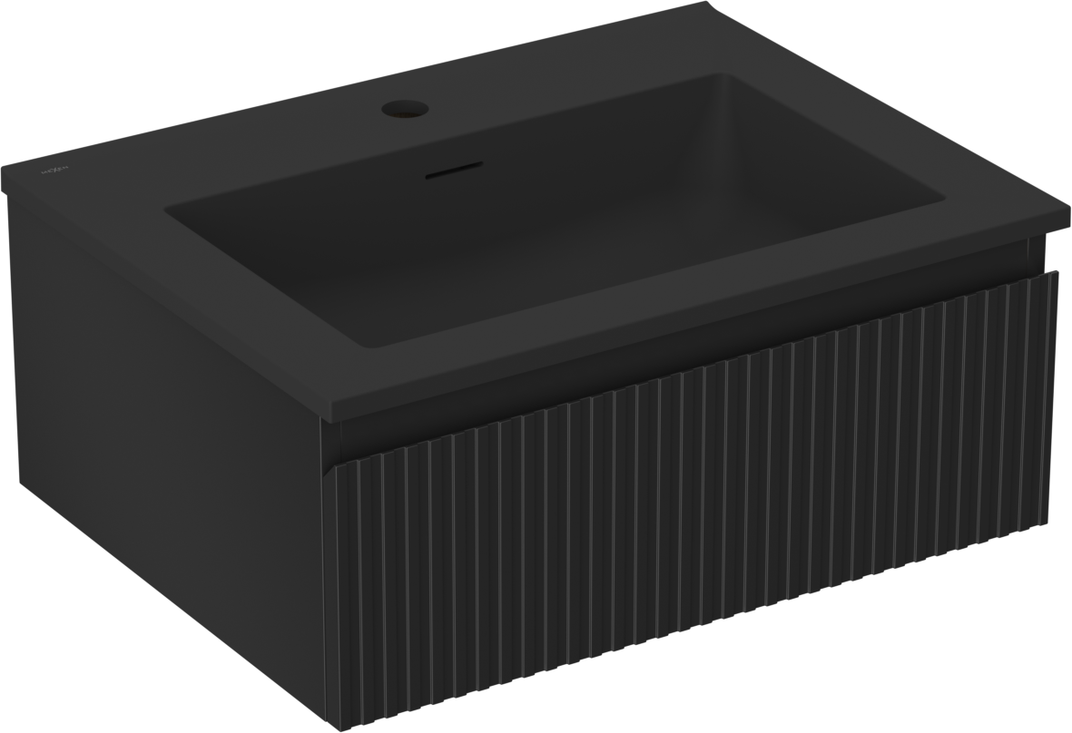 Mexen Rivel 60 cm bathroom cabinet with Otis sink, 1 drawer, fluted, matte black - 91A20-06023-1-BF71-W18M71