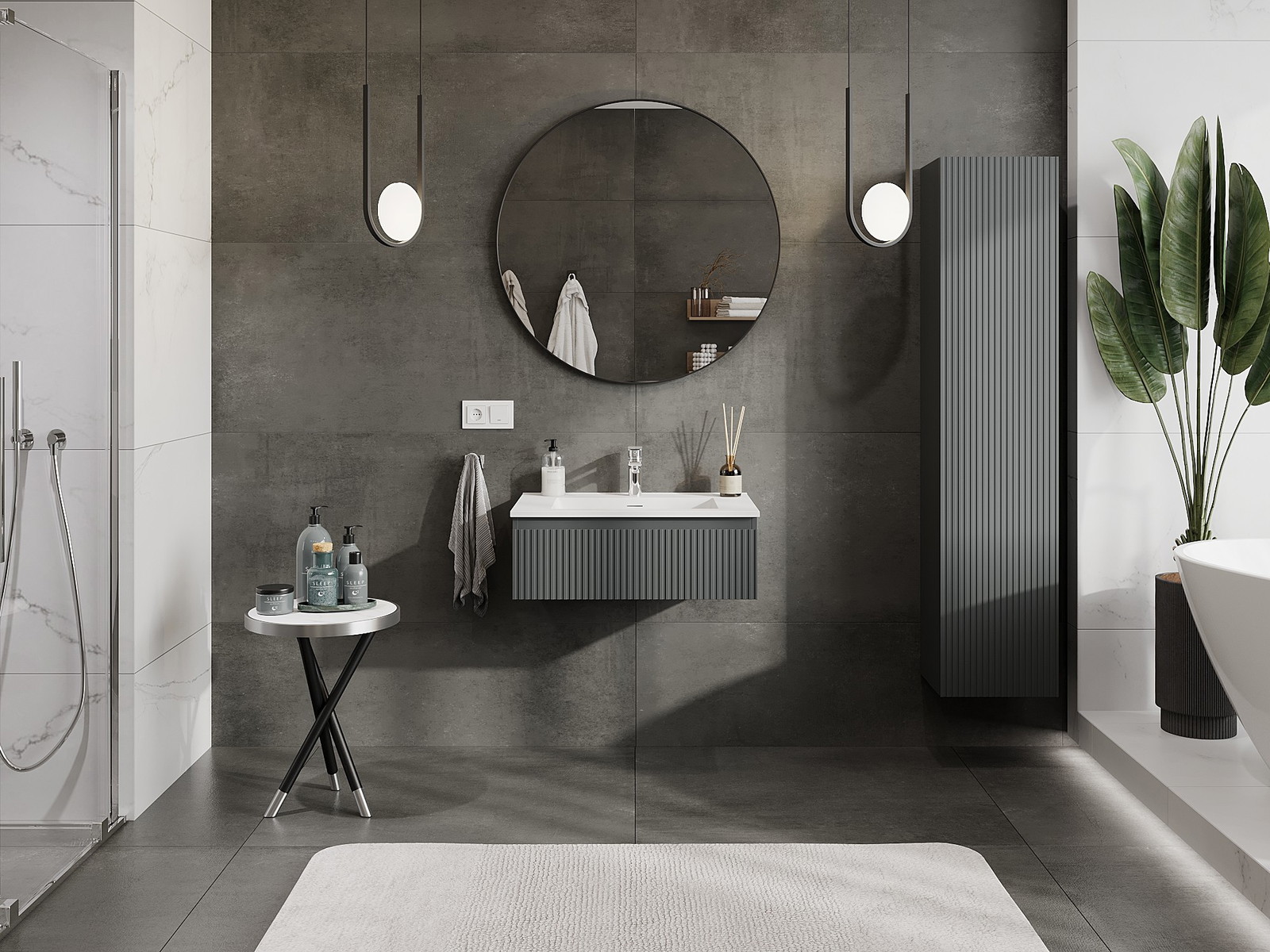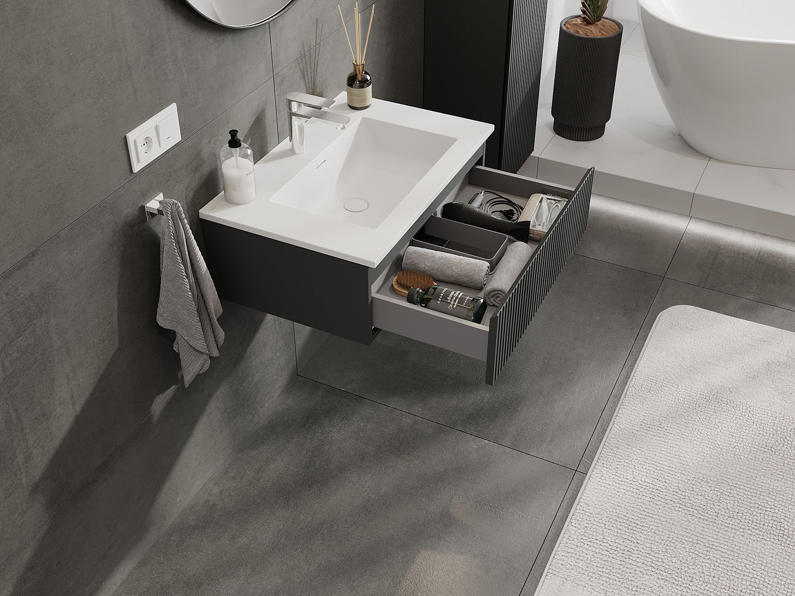 Mexen Rivel 70 cm bathroom cabinet with Otis sink, 1 drawer, grooved, graphite matt/white matt - 91A20-07023-1-BF66-W18M01