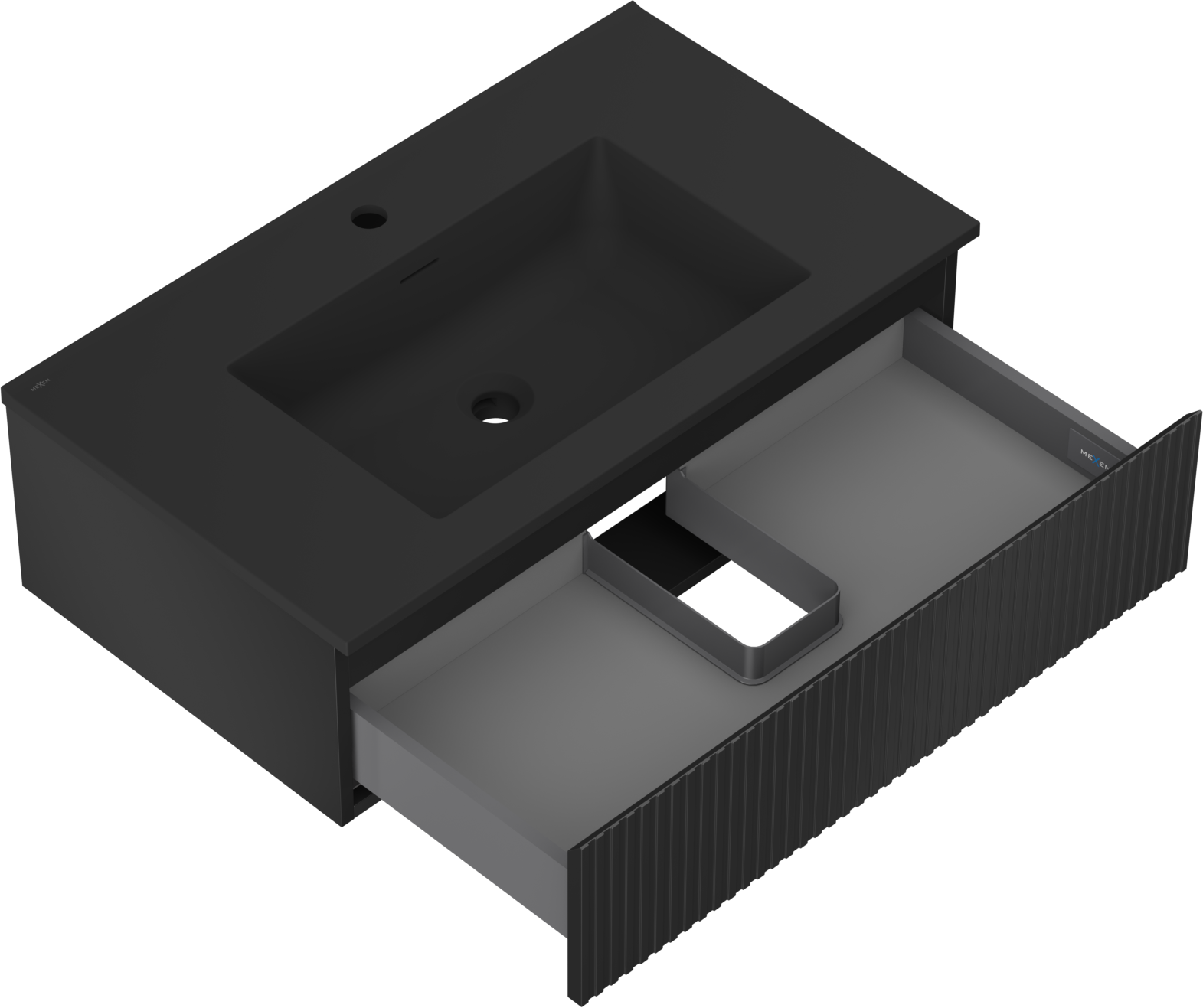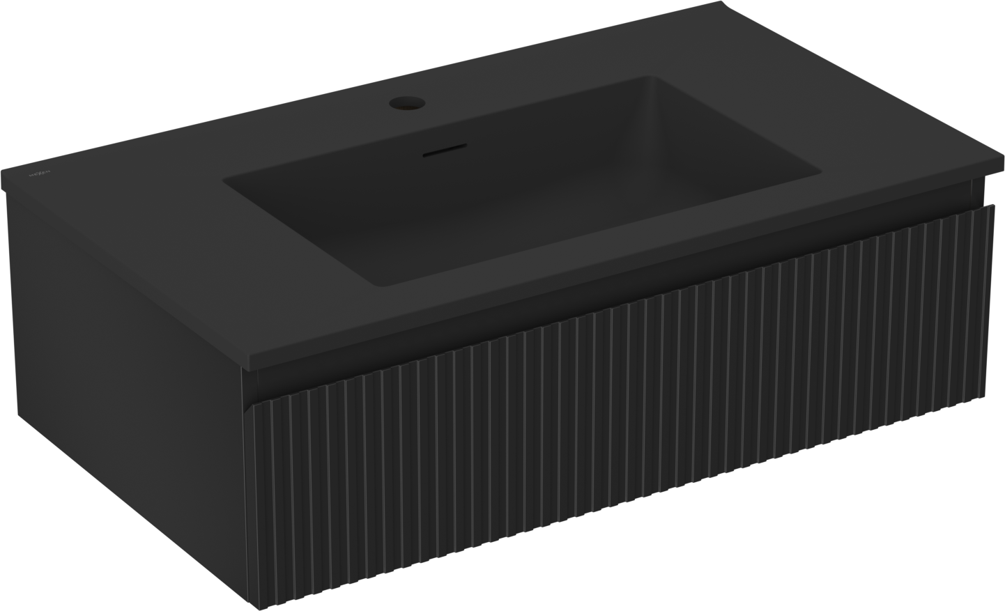 Mexen Rivel 80 cm Bathroom Cabinet with Otis Sink, 1 Drawer, Grooved, Black Matte - 91A20-08023-1-BF71-W18M71