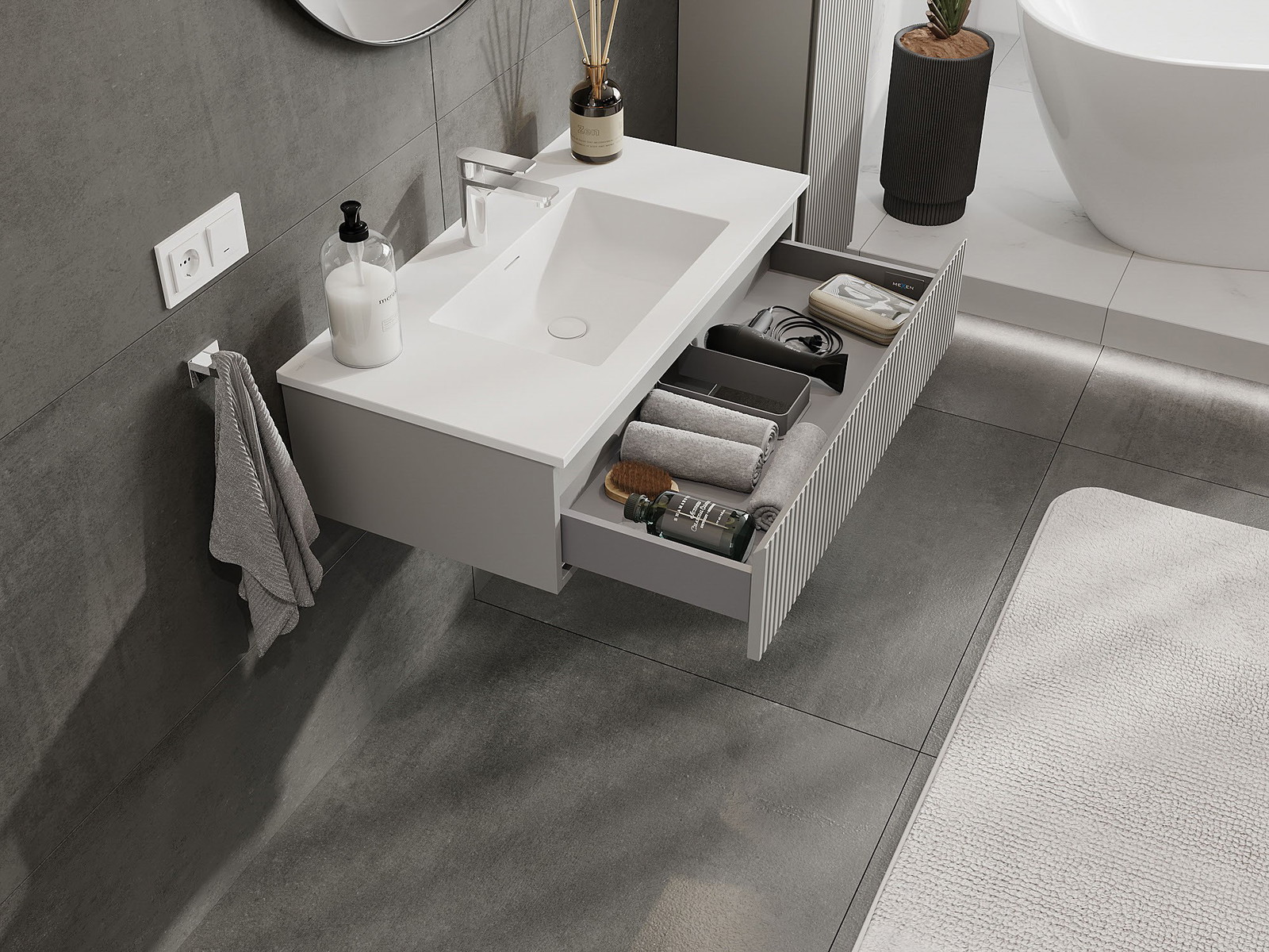 Mexen Rivel Bathroom Cabinet 90 cm with Otis Sink, 1 Drawer, Fluted, Grey Matte/White Matte - 91A20-09023-1-BF62-W18M01