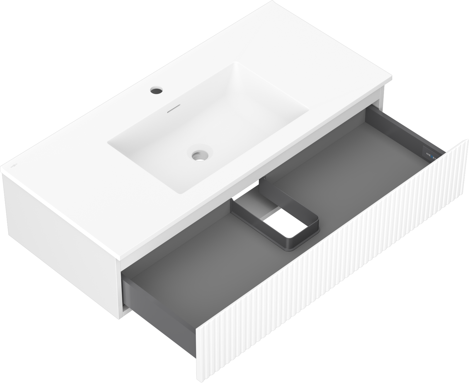 Mexen Rivel bathroom cabinet 100 cm with Otis sink, 1 drawer, grooved, white matte - 91A20-10023-1-BF01-W18M01