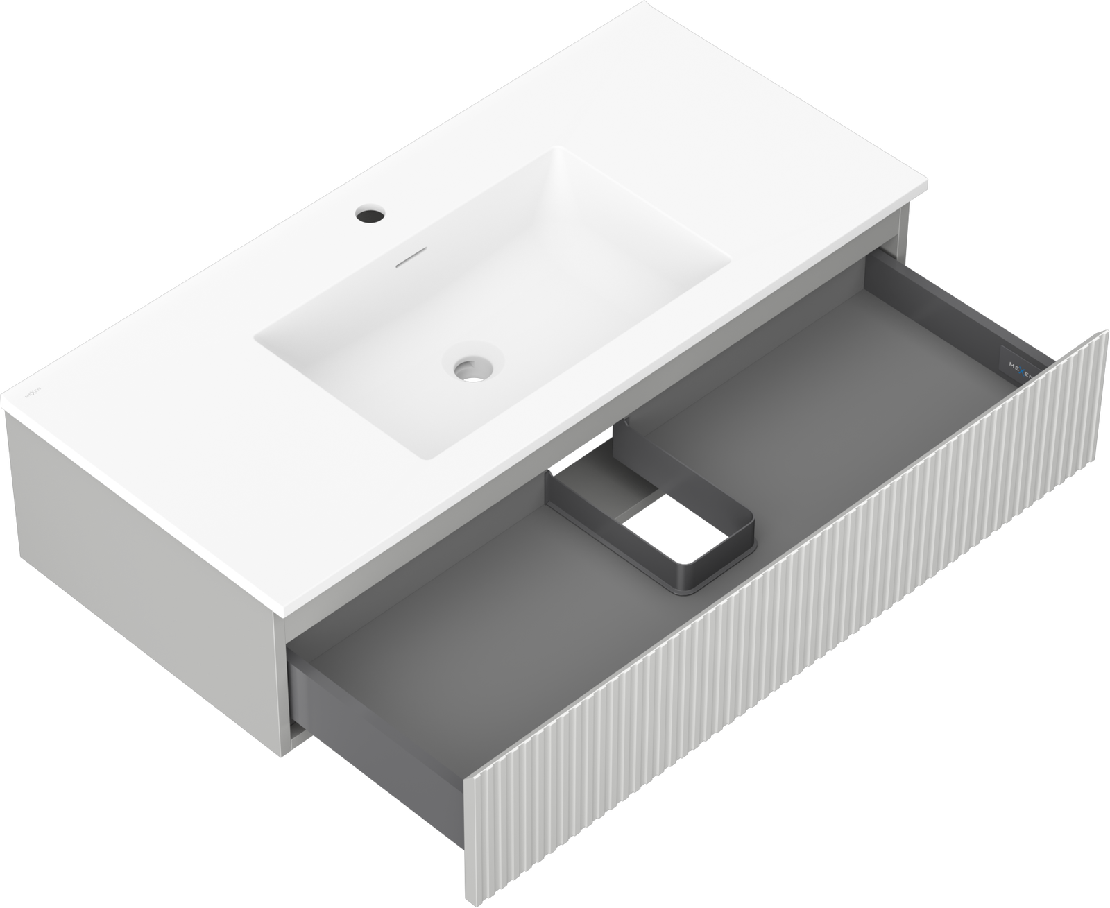 Mexen Rivel 100 cm bathroom cabinet with Otis washbasin, 1 drawer, fluted, grey matt/white matt - 91A20-10023-1-BF62-W18M01
