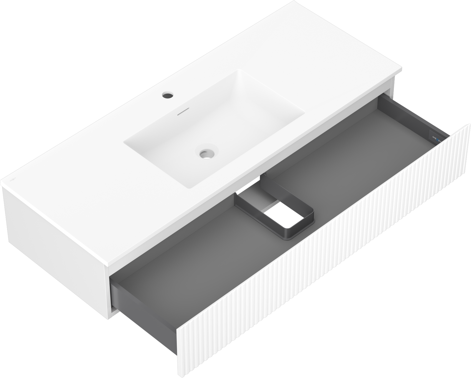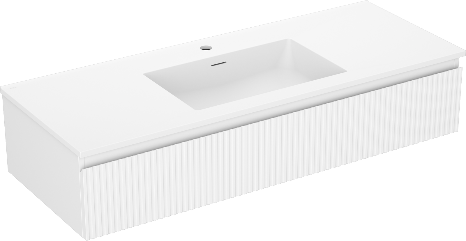 Mexen Rivel bathroom cabinet 120 cm with Otis washbasin, 1 drawer, grooved, white matte - 91A20-12023-1-BF01-W18M01
