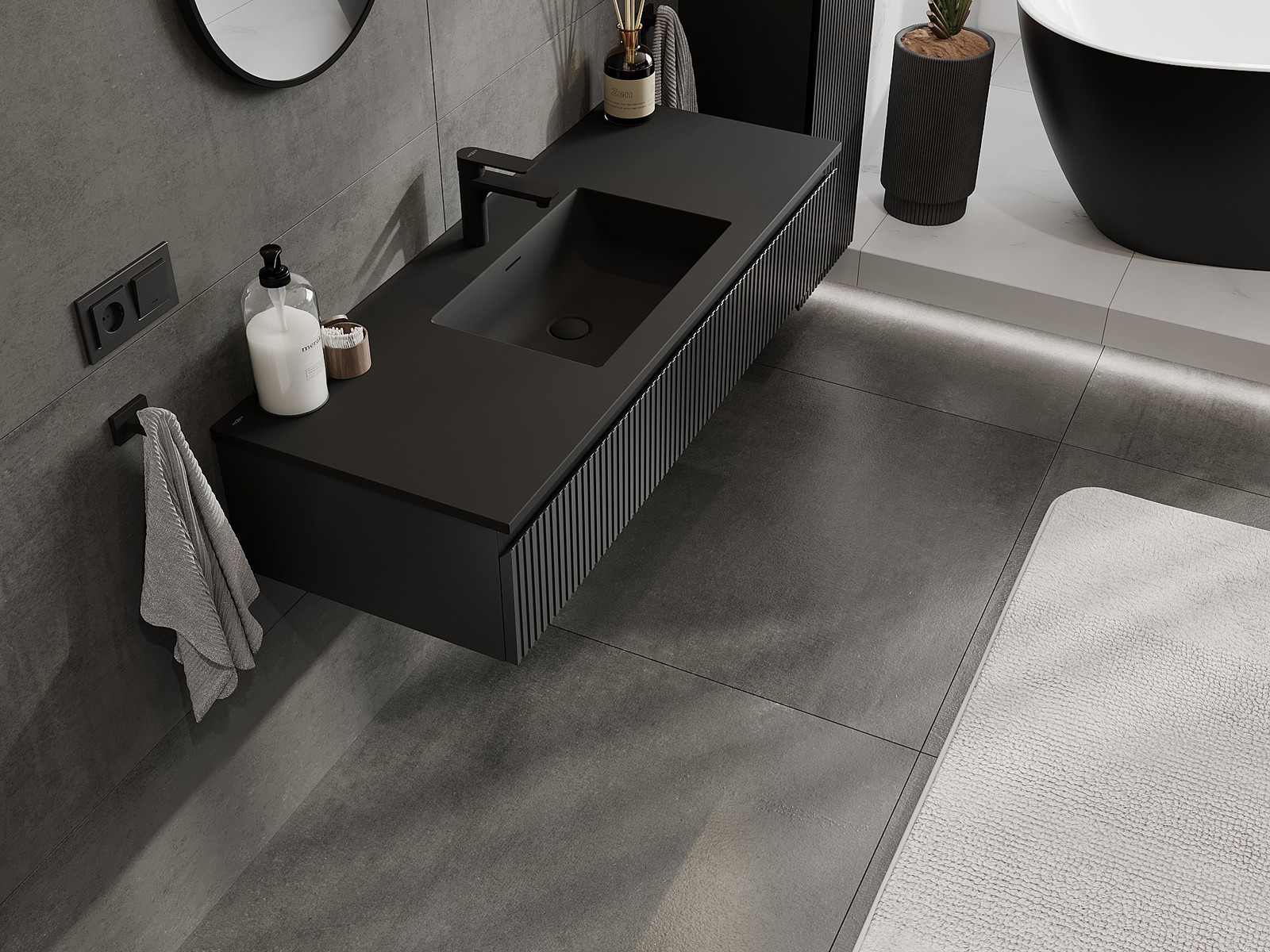 Mexen Rivel bathroom cabinet 120 cm with Otis sink, 1 drawer, fluted, black matte - 91A20-12023-1-BF71-W18M71