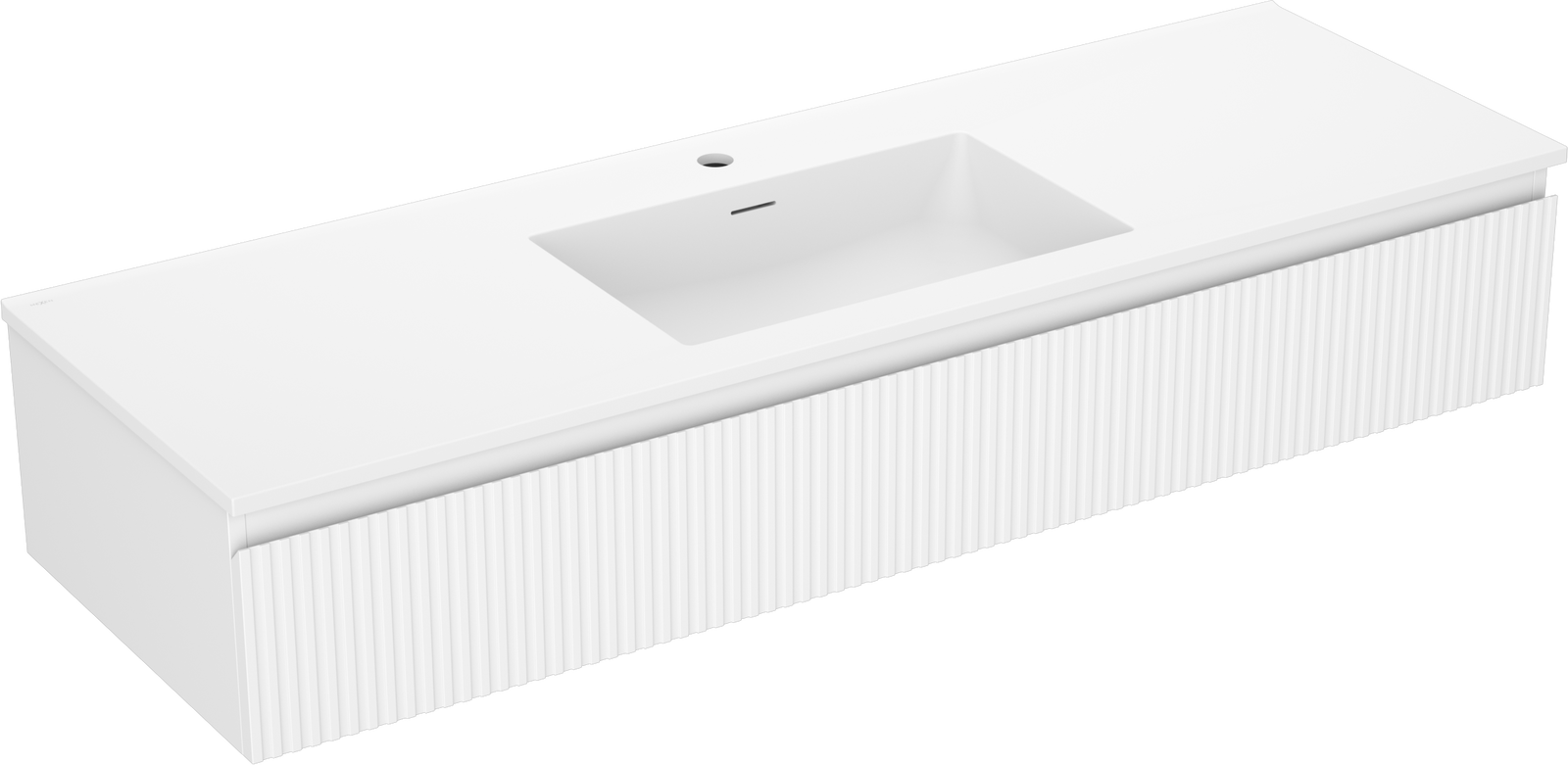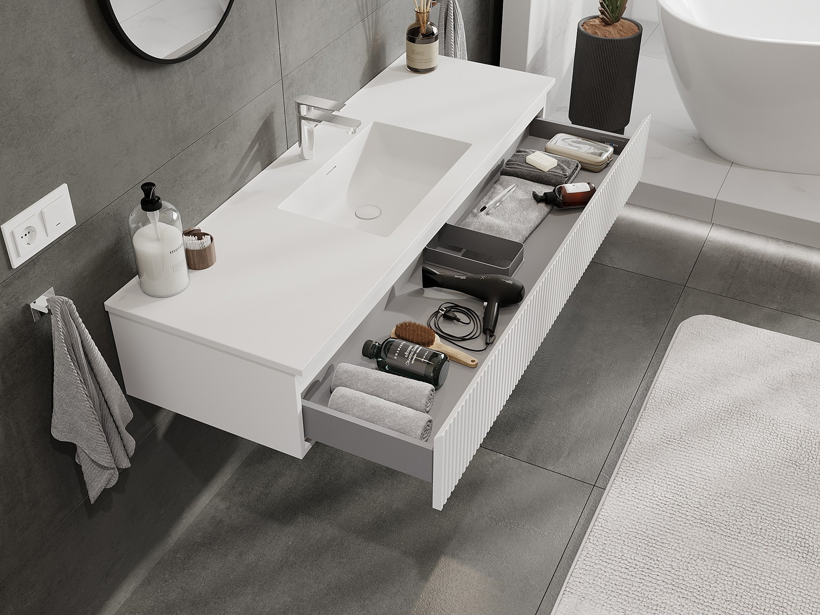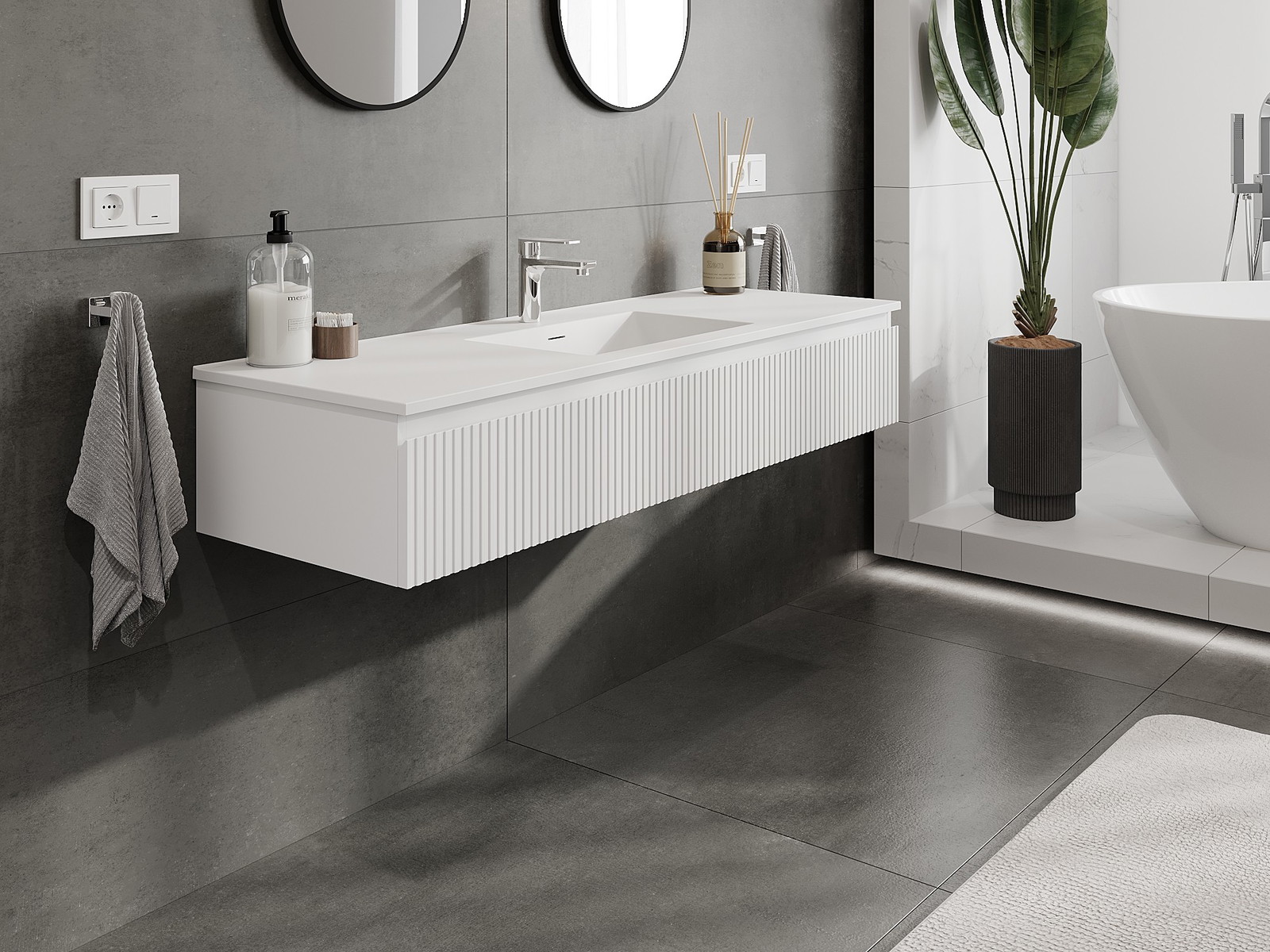 Mexen Rivel 140 cm bathroom cabinet with Otis sink, 1 drawer, ribbed, white matte - 91A20-14023-1-BF01-W18M01