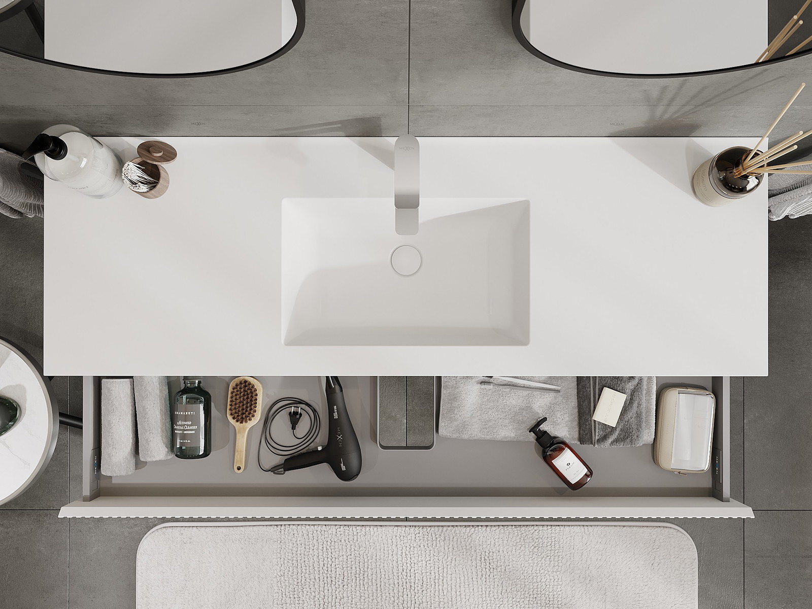 Our modular bathroom furniture can be combined in various colour configurations, allowing for complete personalisation. You can choose both the appearance and functions of individual elements, enabling you to adapt the furniture to your own stylistic and functional preferences.