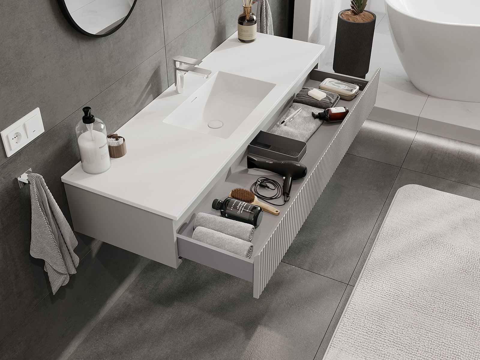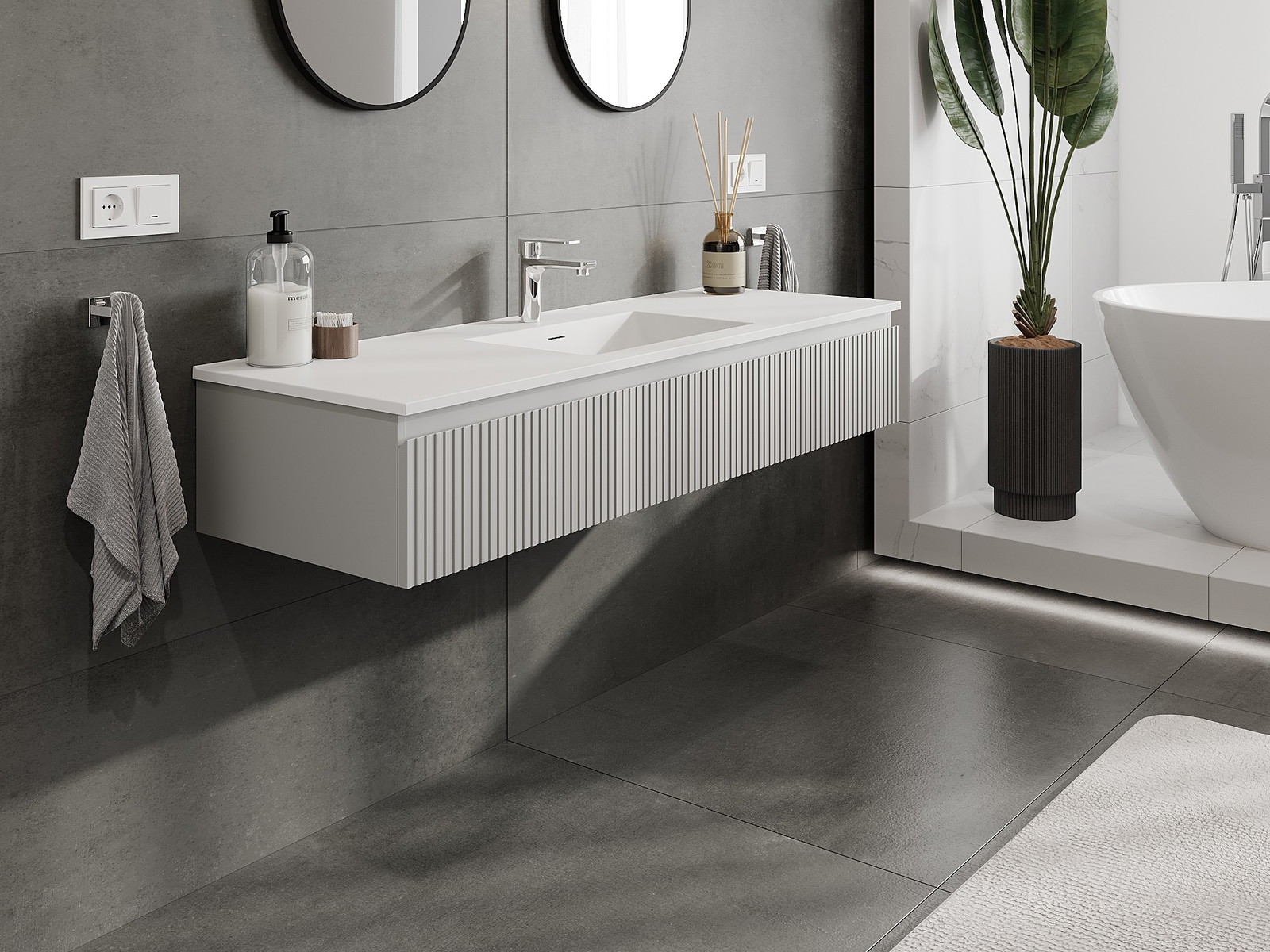 Mexen Rivel 140 cm Bathroom Cabinet with Otis Sink, 1 Drawer, Fluted, Grey Matte/White Matte - 91A20-14023-1-BF62-W18M01
