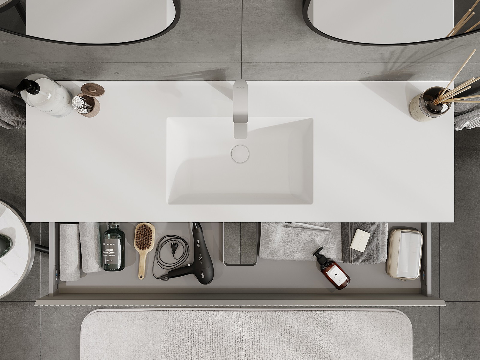 Our modular bathroom furniture can be combined in various colour configurations, allowing for complete personalisation. You can choose both the appearance and functions of individual elements, enabling you to adapt the furniture to your own stylistic and functional preferences.