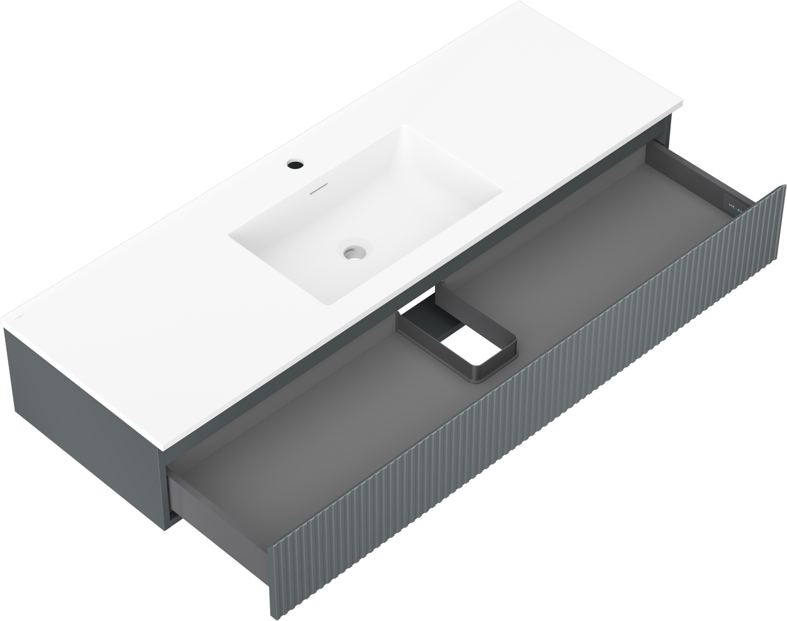 Mexen Rivel bathroom cabinet 140 cm with sink Otis, 1 drawer, fluted, matte graphite/white matte - 91A20-14023-1-BF66-W18M0