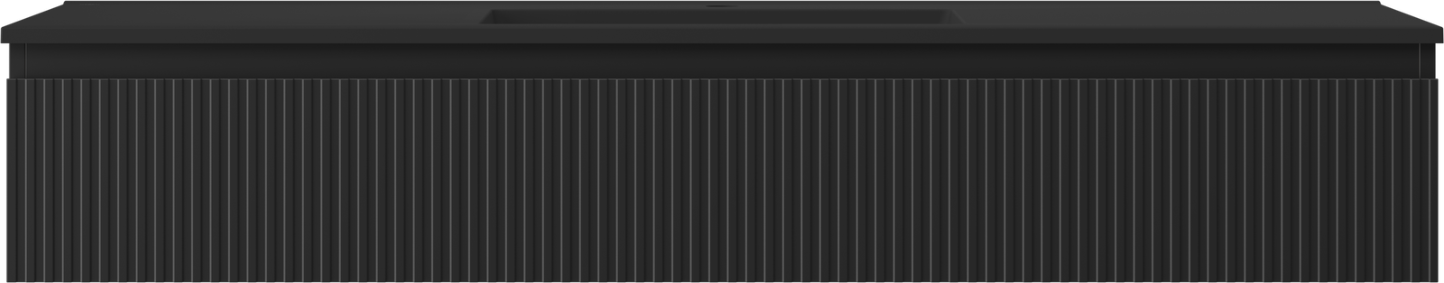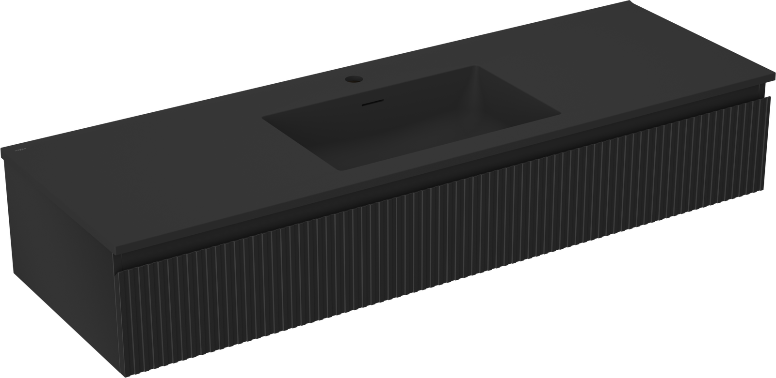 Mexen Rivel 140 cm bathroom cabinet with Otis washbasin, 1 drawer, fluted, black matte - 91A20-14023-1-BF71-W18M71