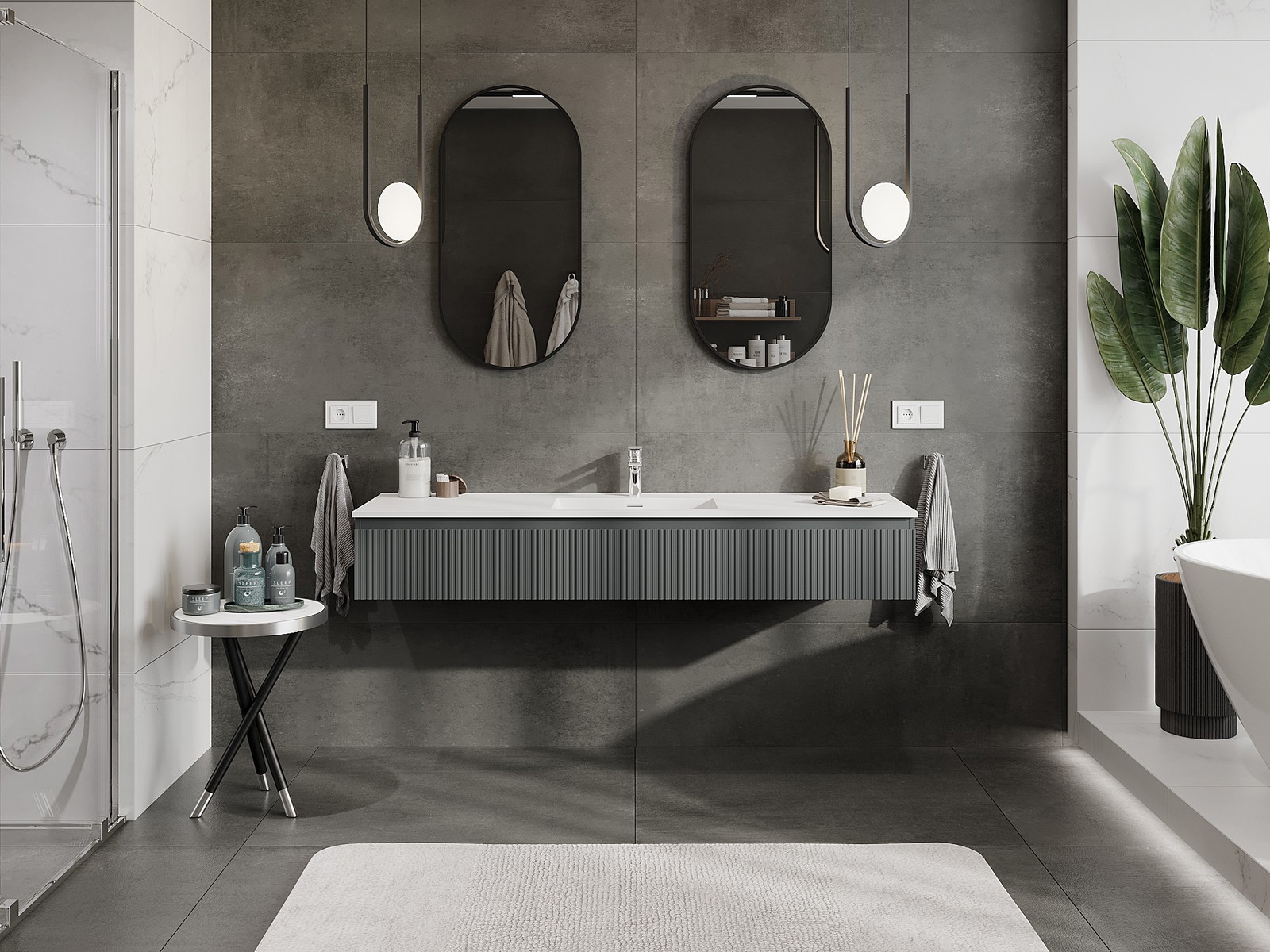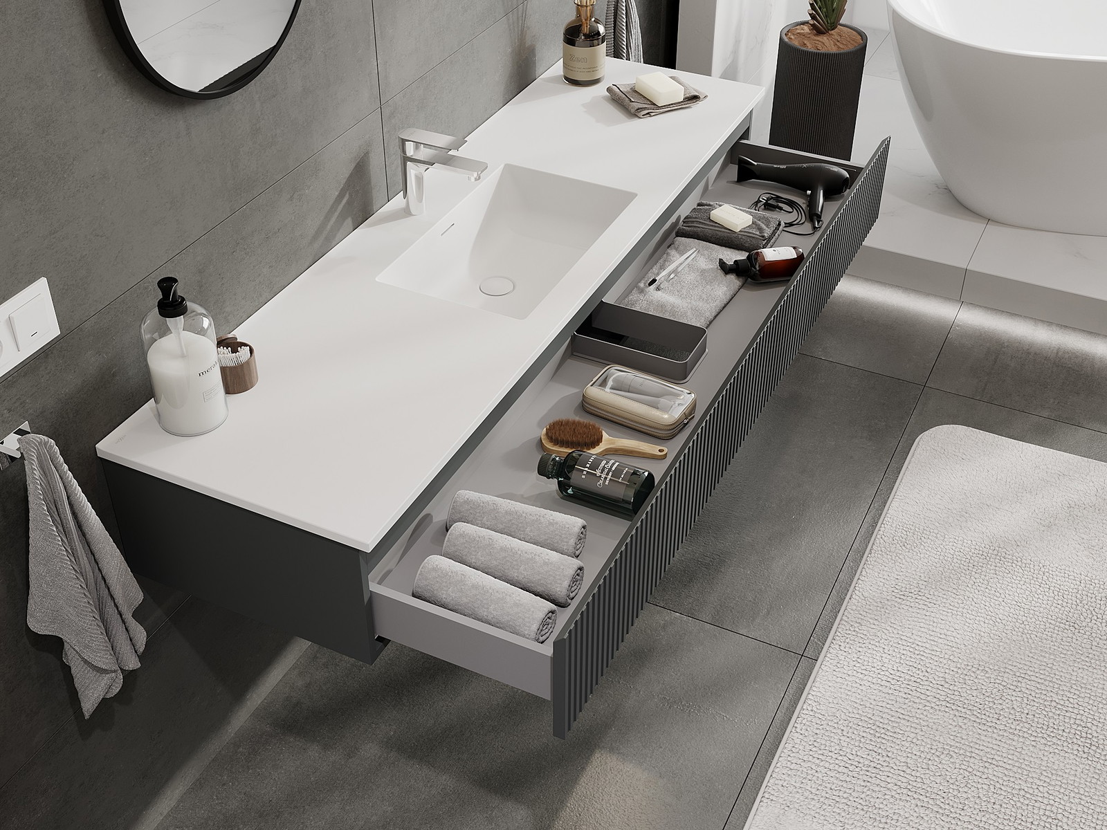 Mexen Rivel 160 cm bathroom cabinet with sink Otis, 1 drawer, grooved, matte graphite/white matte - 91A20-16023-1-BF66-W18M0