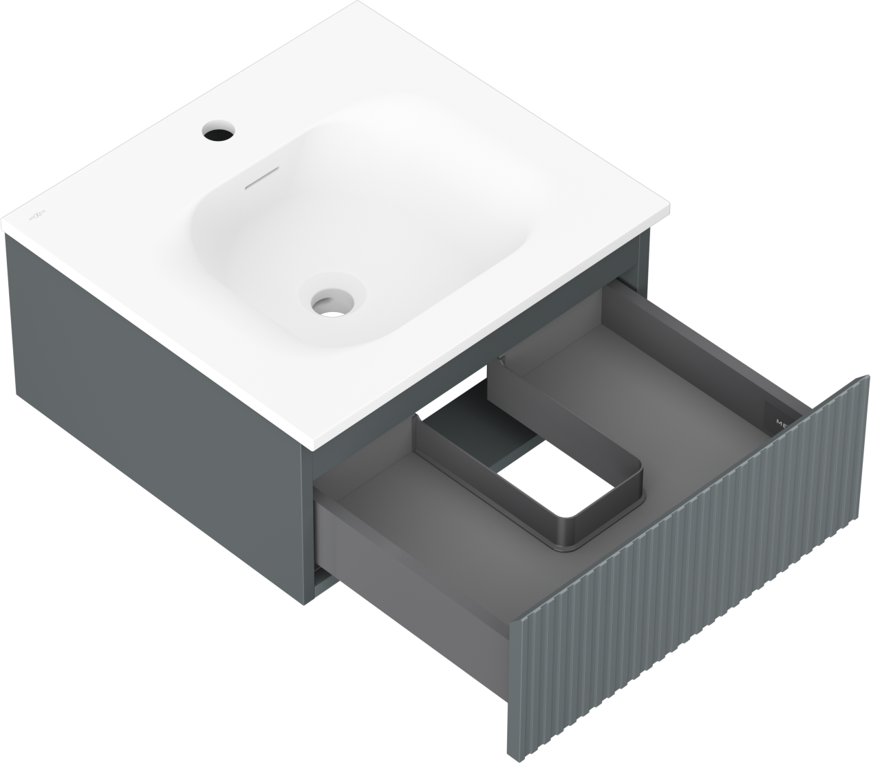 The cutout in the drawer is designed in such a way as to accommodate the siphon, which is essential in sink installations. This allows the furniture to be fully functional without having to give up drawer space for the installation.