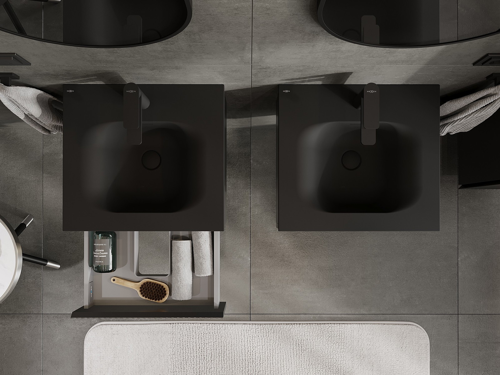 Our modular bathroom furniture can be combined in various colour configurations, allowing for complete personalisation. You can choose both the appearance and functions of individual elements, enabling you to adapt the furniture to your own stylistic and functional preferences.
