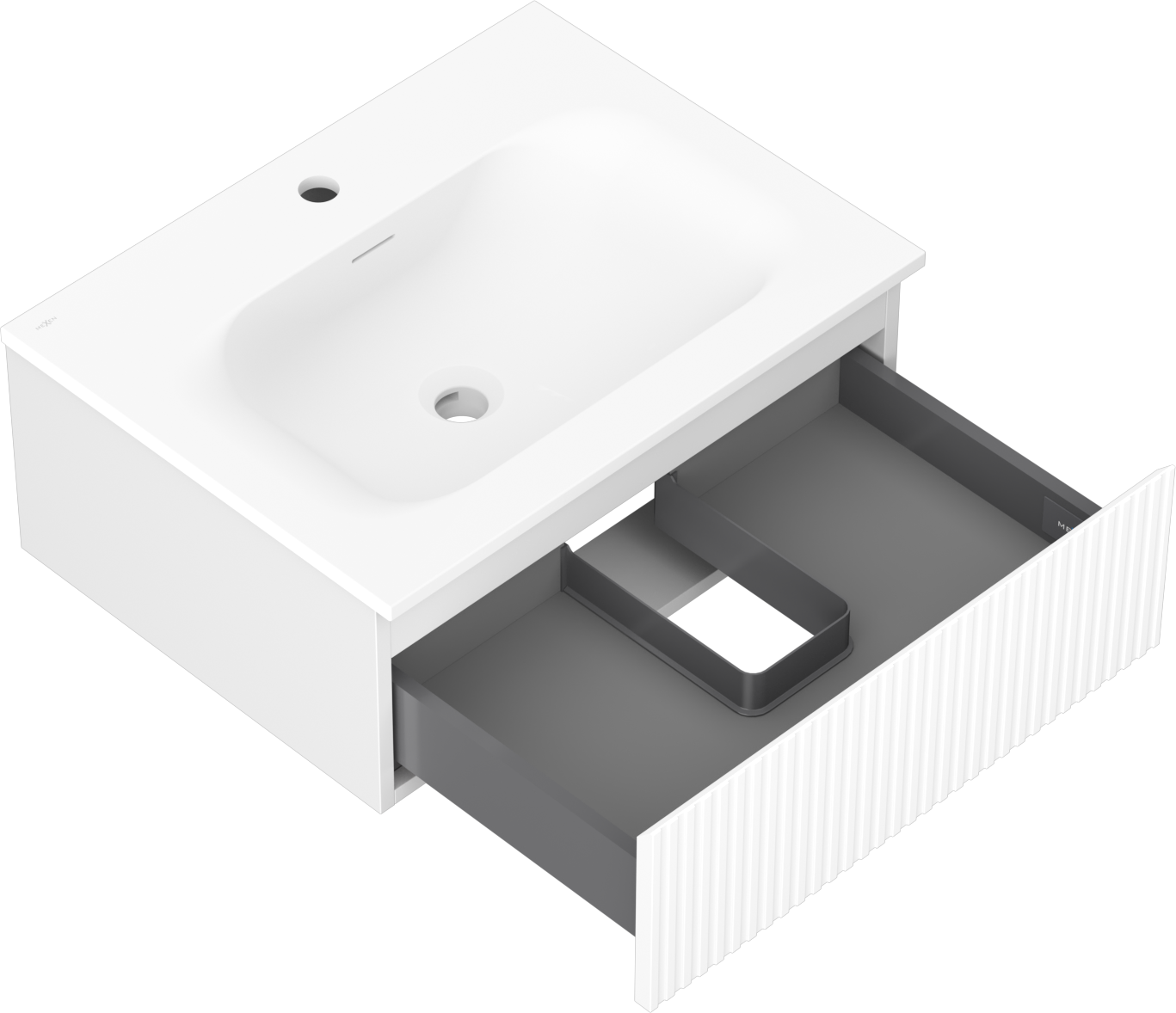 The cutout in the drawer is designed in such a way as to accommodate the siphon, which is essential in sink installations. This allows the furniture to be fully functional without having to give up drawer space for the installation.