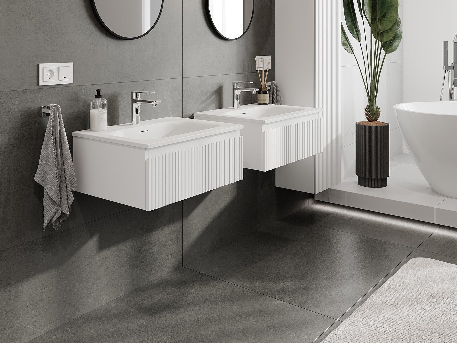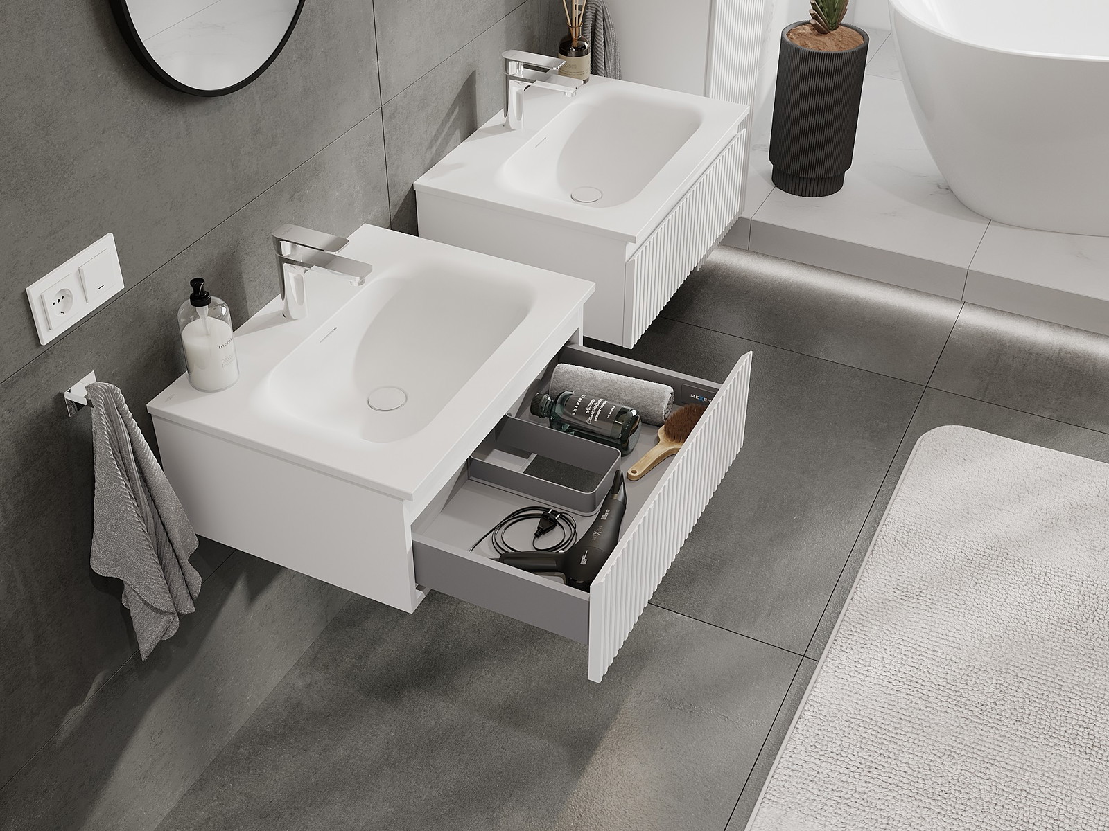 Our modular bathroom furniture can be combined in various colour configurations, allowing for complete personalisation. You can choose both the appearance and functions of individual elements, enabling you to adapt the furniture to your own stylistic and functional preferences.
