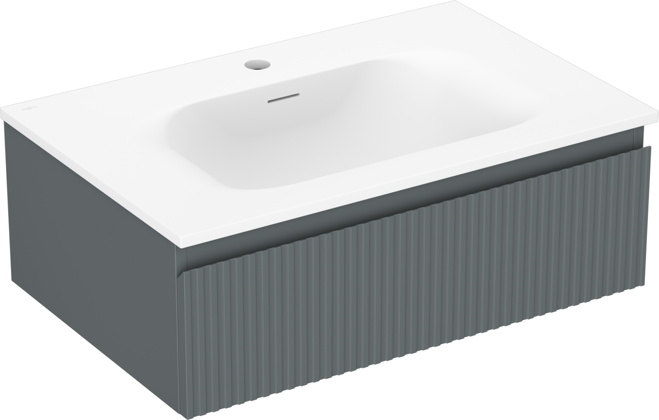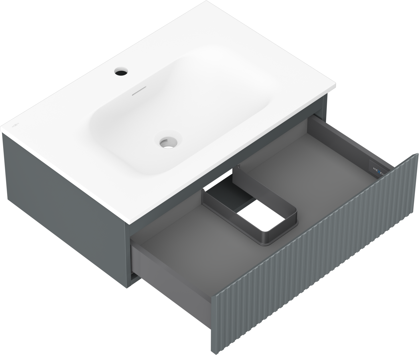 Mexen Rivel 70 cm bathroom cabinet with Vela washbasin, 1 drawer, ribbed, matt graphite/matt white - 91A20-07023-1-BF66-W23M01