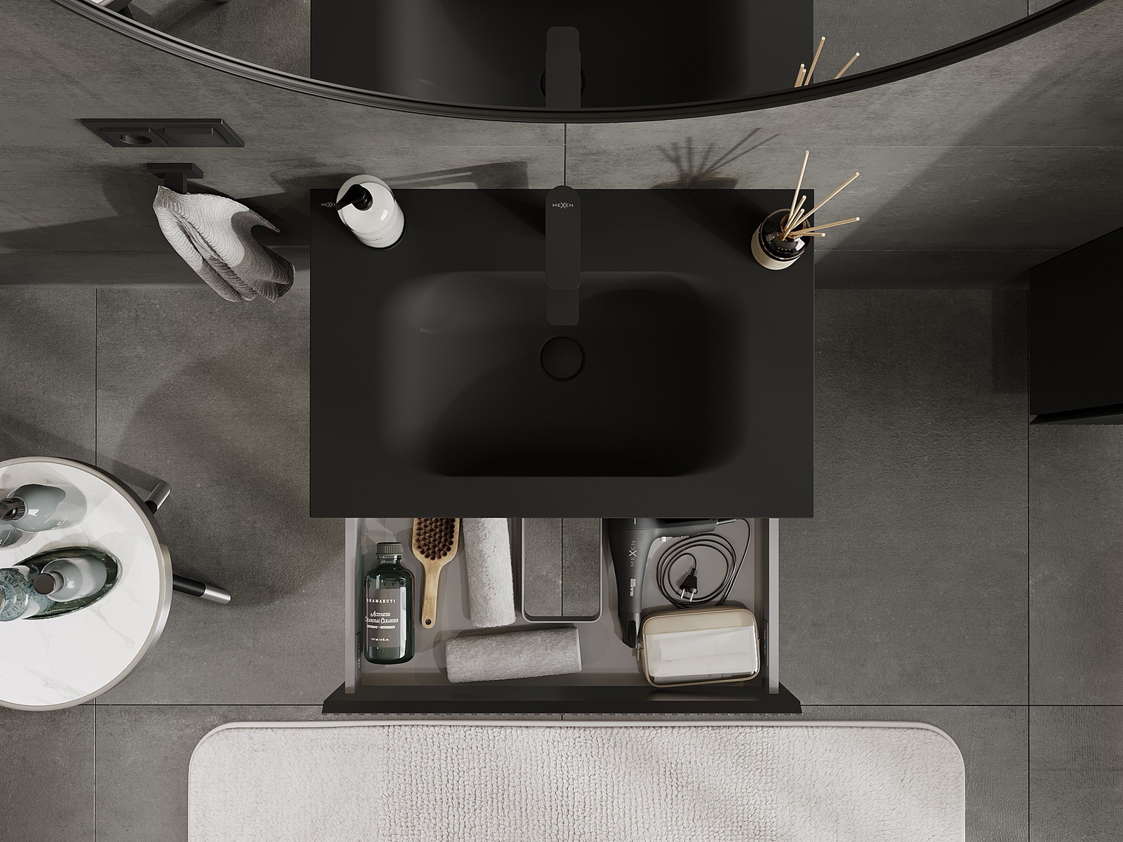 The cabinet carcass is delivered fully assembled, which means maximum convenience and time savings. You don't have to spend hours assembling the furniture – just install it in your chosen spot in the bathroom. This is an ideal solution for those who appreciate quick assembly and immediate results.